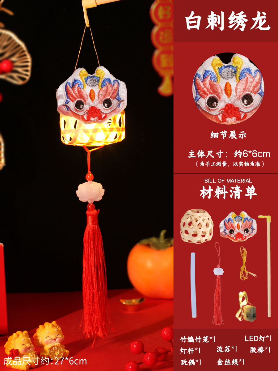 new year bamboo lantern [red embroidered dragon]]