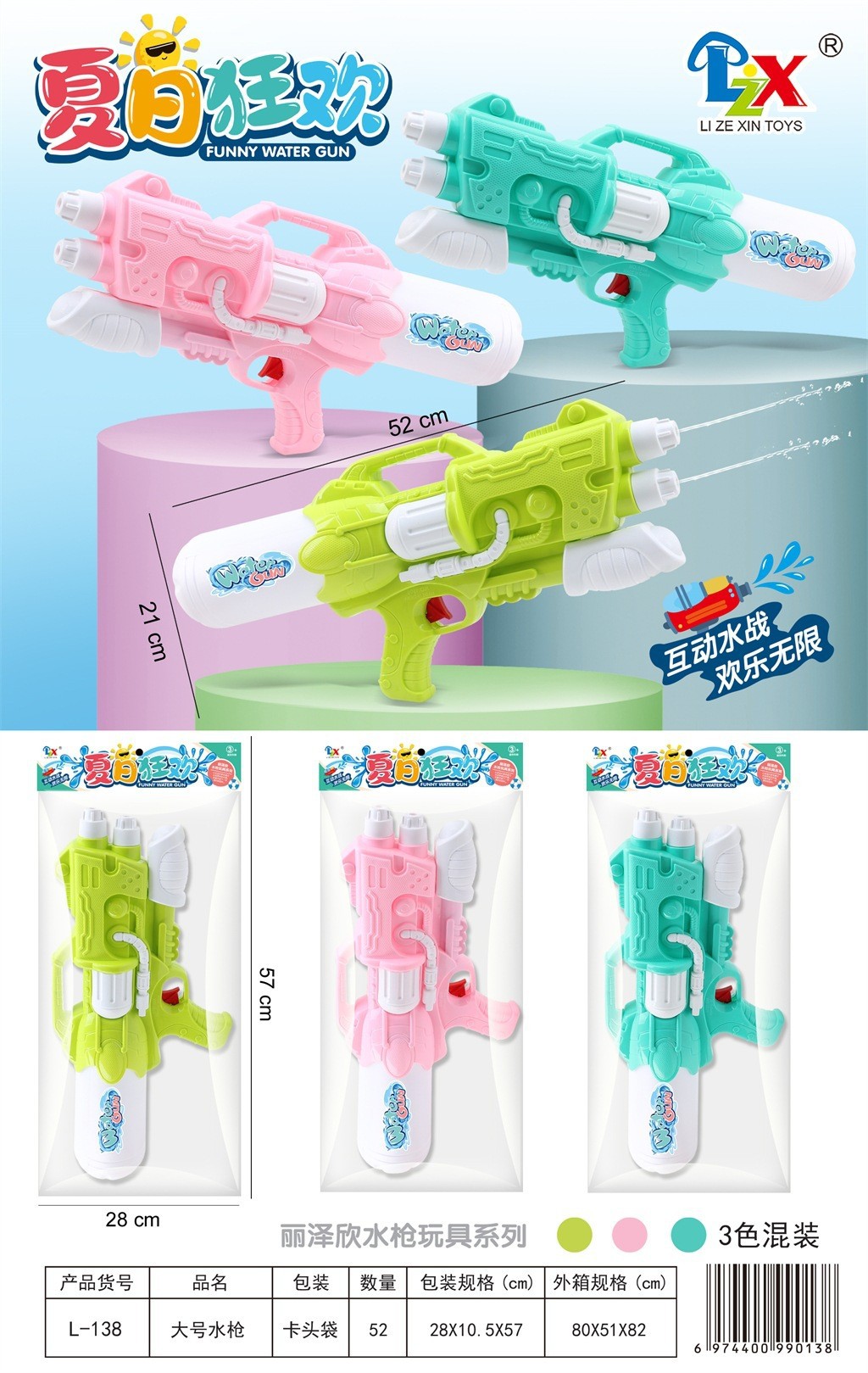 [l-138] air pressure water gun [750ml capacity] random color