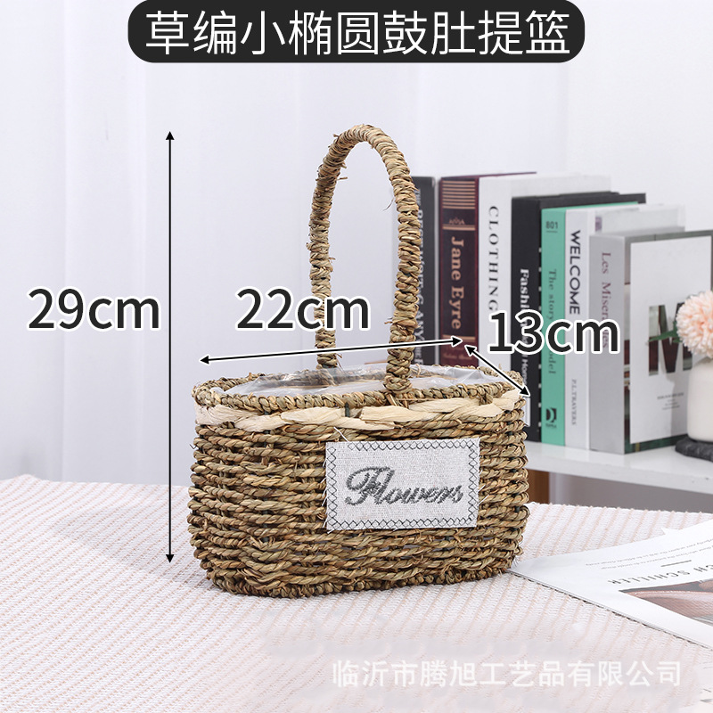 supply straw baskets hand-woven flower basket wooden ball wicker storage basket portable plant basket wholesale