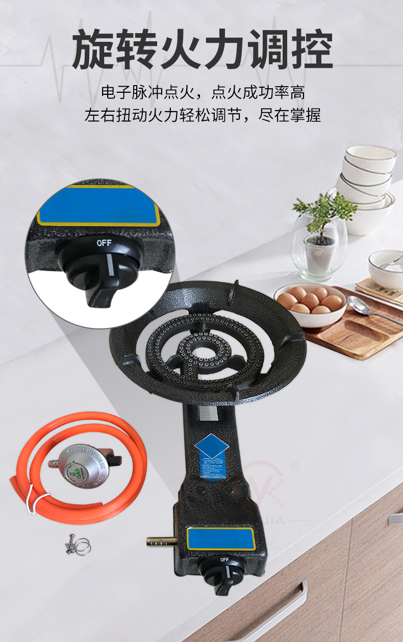 Commercial Raging Fire Stove Liquefied Gas Cast Iron Fierce Fire Stove Natural Gas Electronic Ignition Low Pressure Teppanyaki Gas Furnace