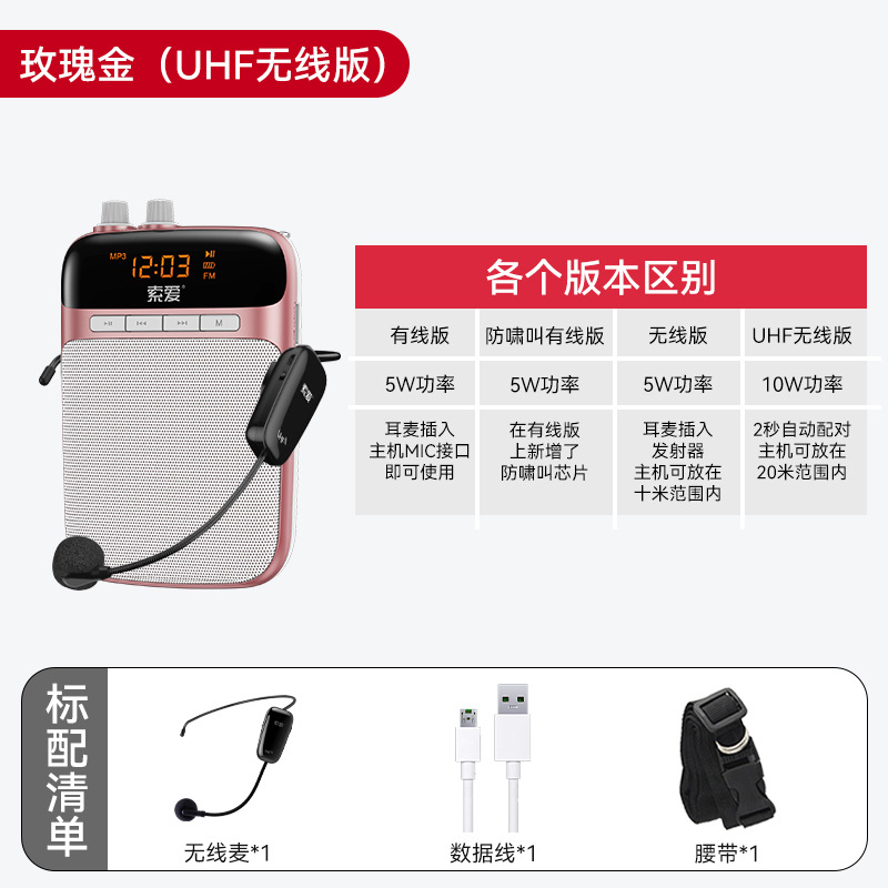 s518 rose gold [non-bluetooth version without bluetooth prompt] wired and wireless dual-use