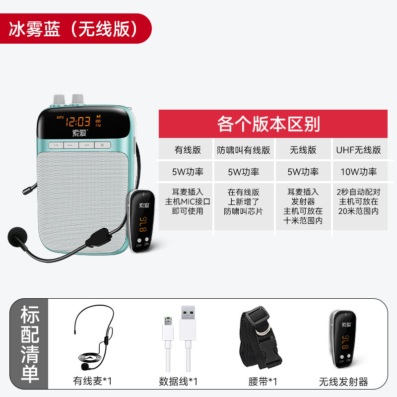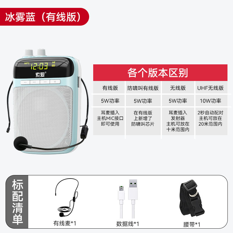 s318 wired version [ice mist blue] with bluetooth playback without fm