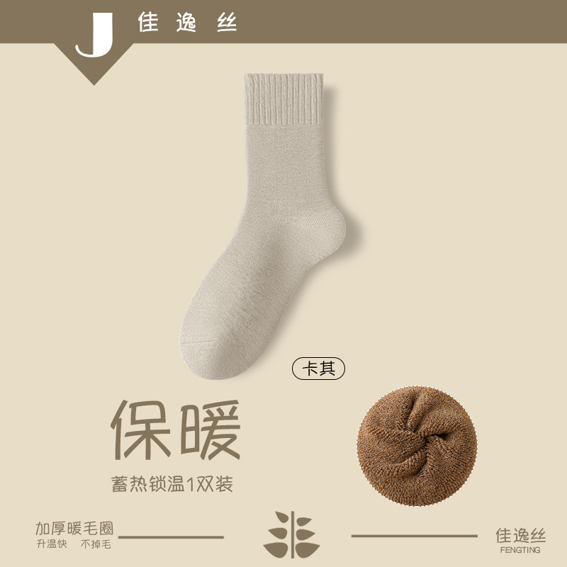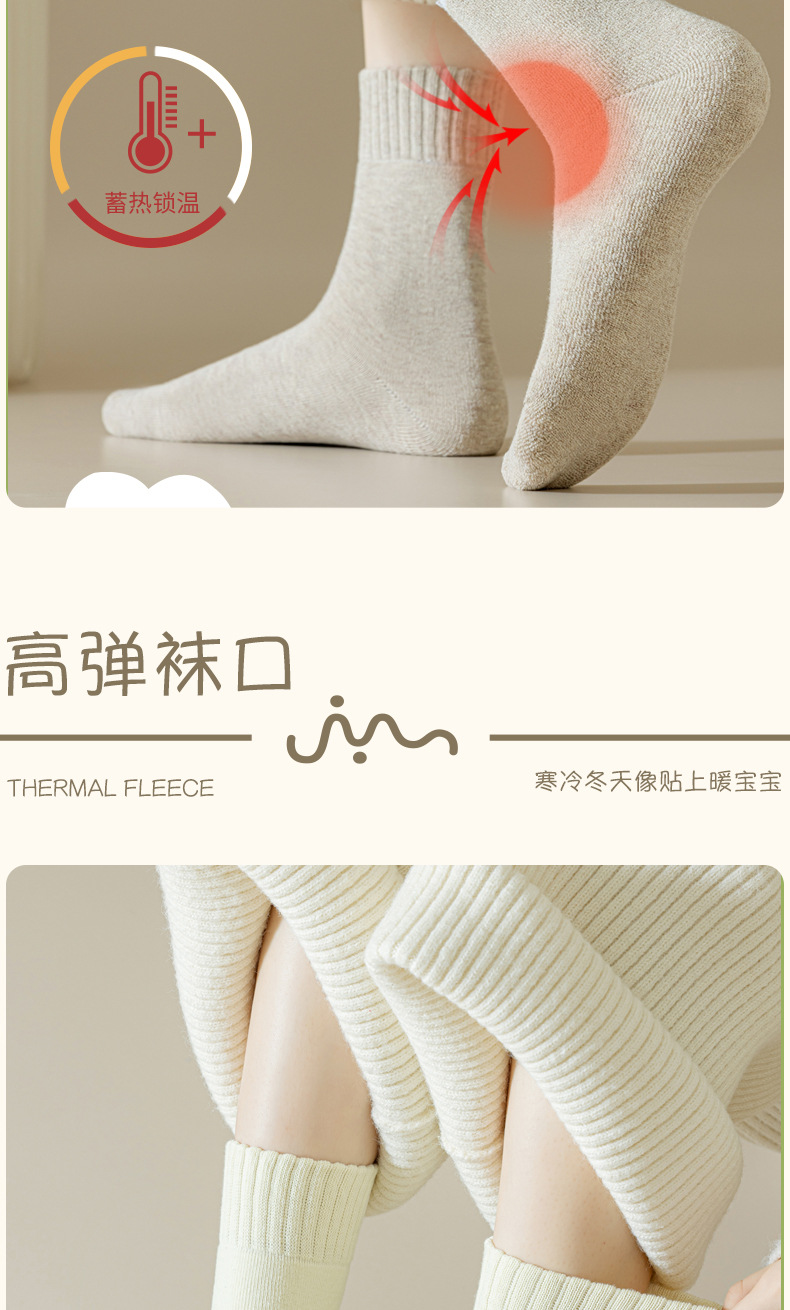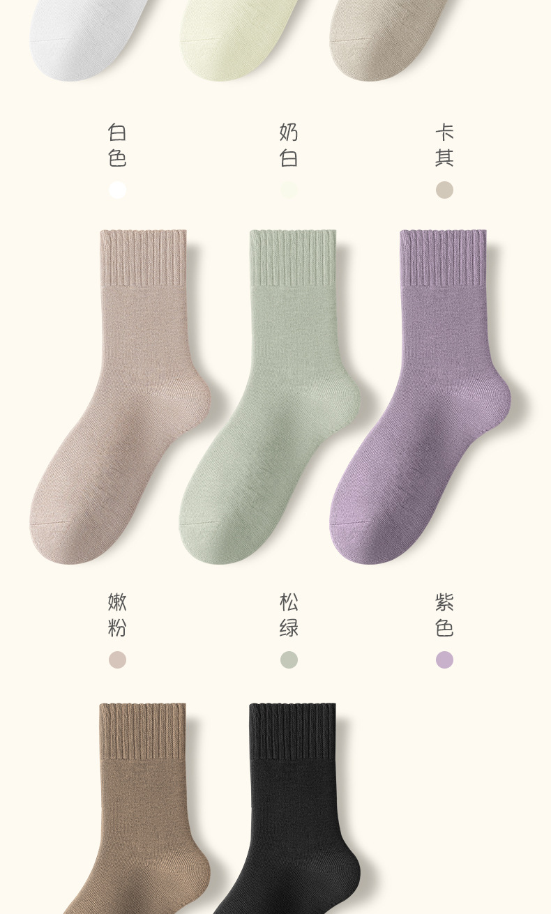 Thick Socks Girls' Cotton Autumn and Winter Long Socks Fleece-Lined Pure Cotton Seamless Socks Terry-Loop Hosiery Maternity Socks Zhuji Socks Wholesale