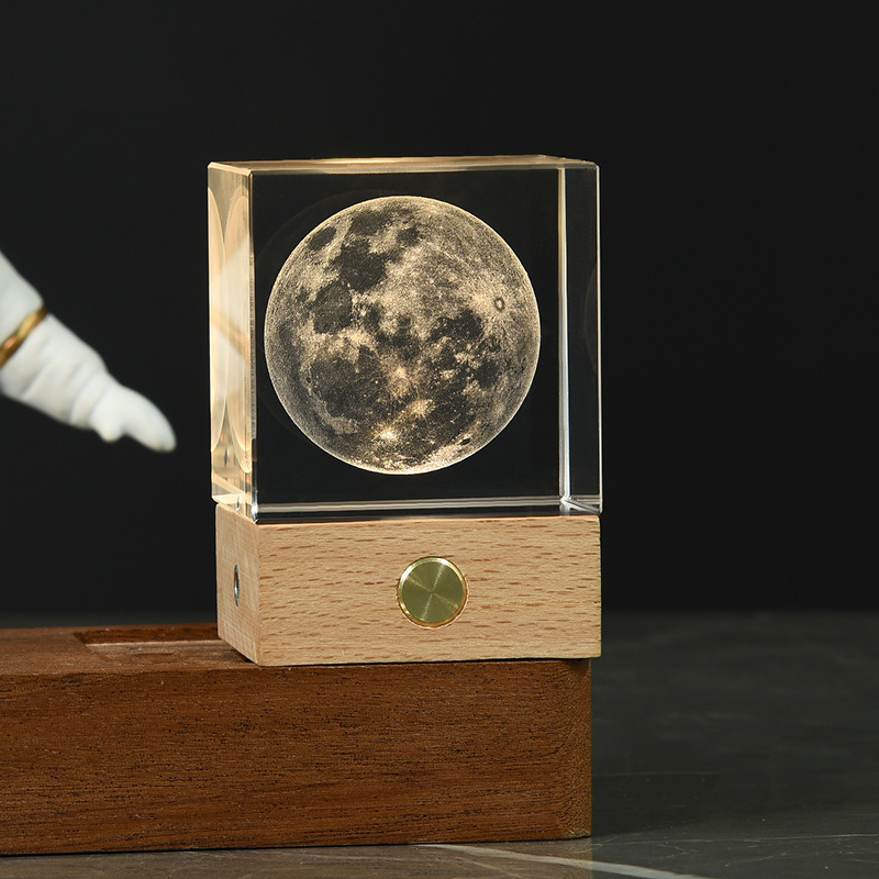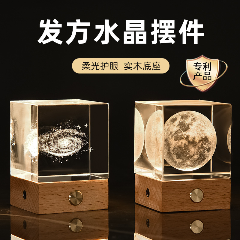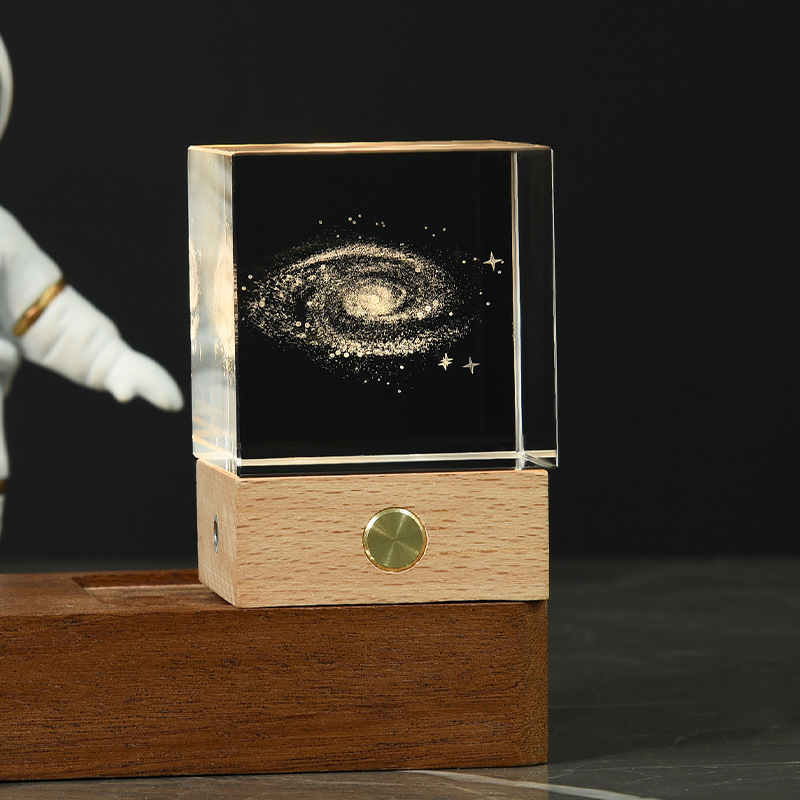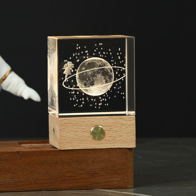Creative Solar System Galaxy Crystal Ball Home Decoration 3d Laser Inner Carving Wooden Glowing Night Lights Gift