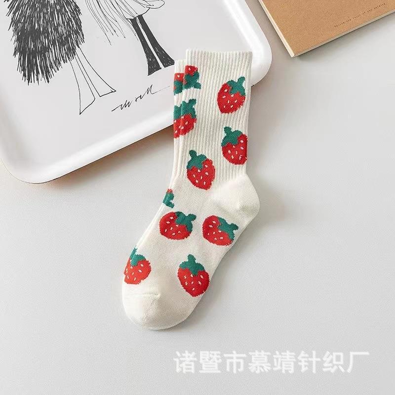 Spring and Autumn Tube Socks Pink Love Strawberry Socks Women's Fashion All-Matching Japanese Cute Ins Fashion Alphabet Stockings