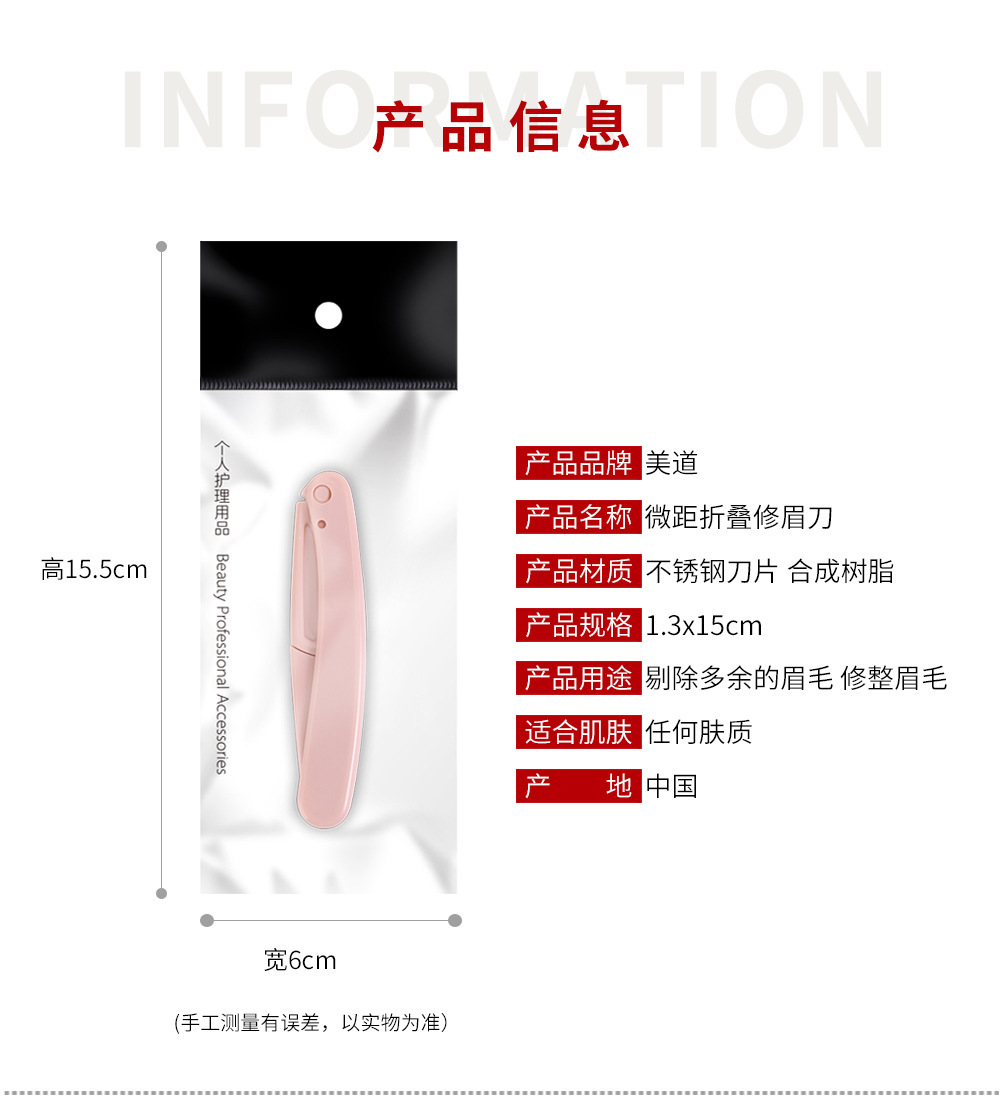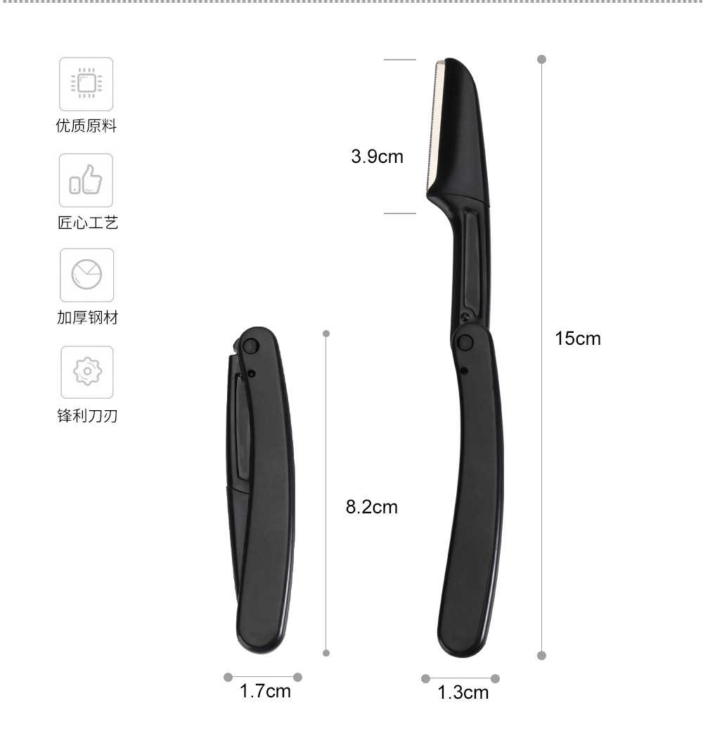 b04044049 folding 0833 black eye-brow knife simple package