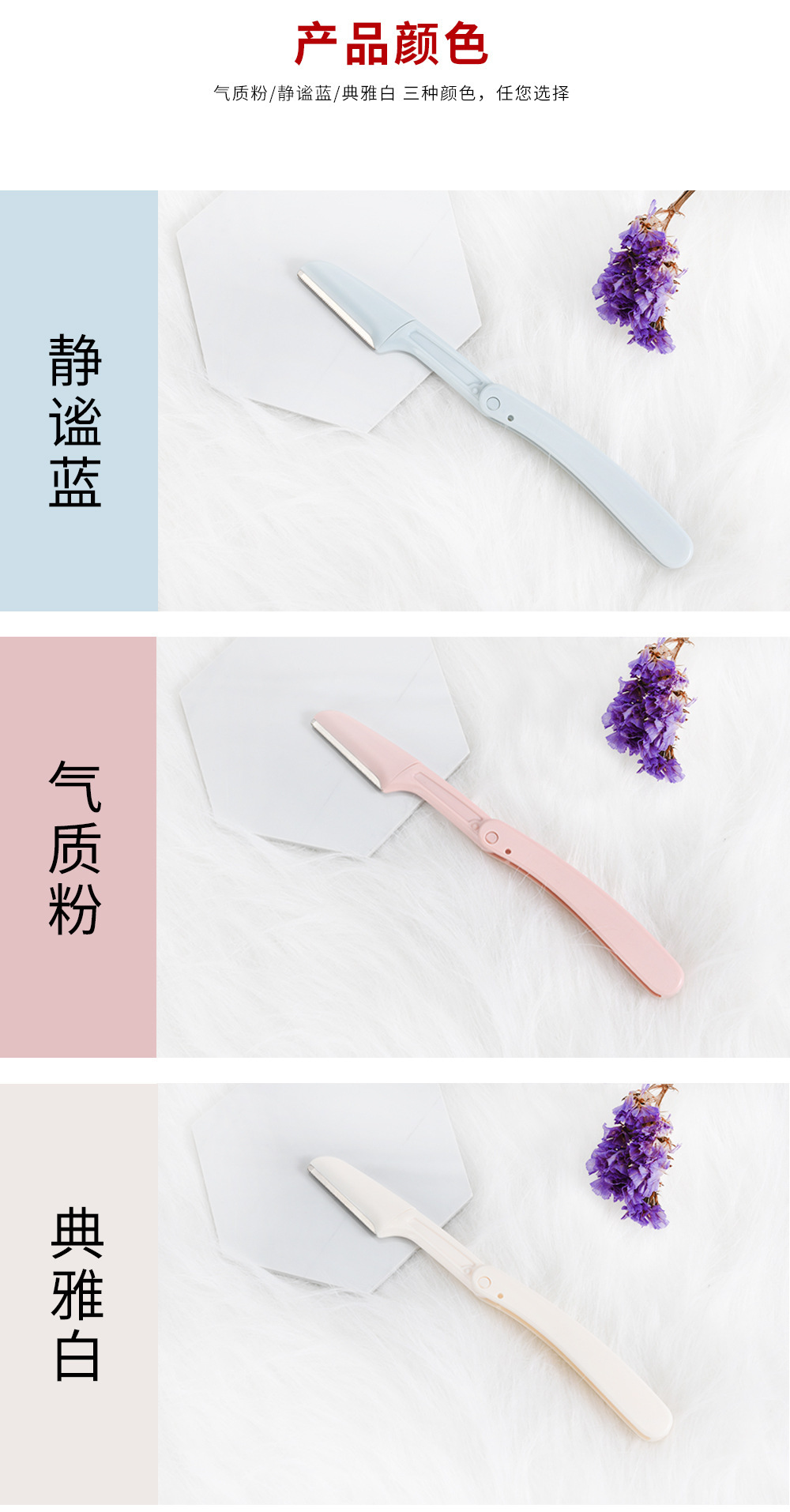35219 three colors 0833 folding eye-brow knife (plastic box-packed three colors)