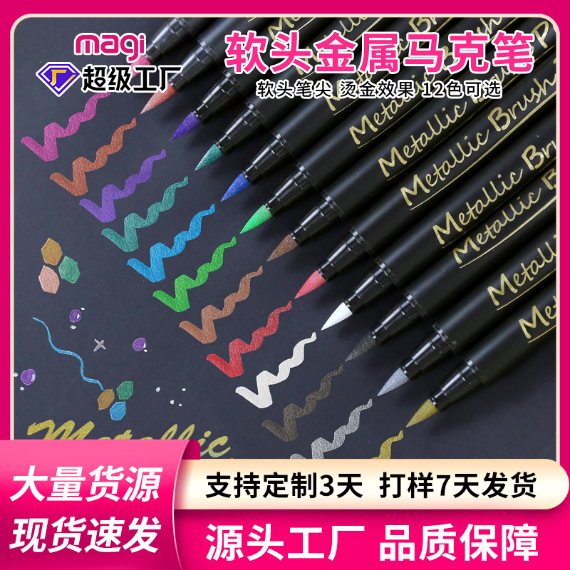 Neutral Soft Head Metal Marker Pen 12 Color Water-Based Painting Pen Color Paint Fixer Diy Album Mark Marking Pen