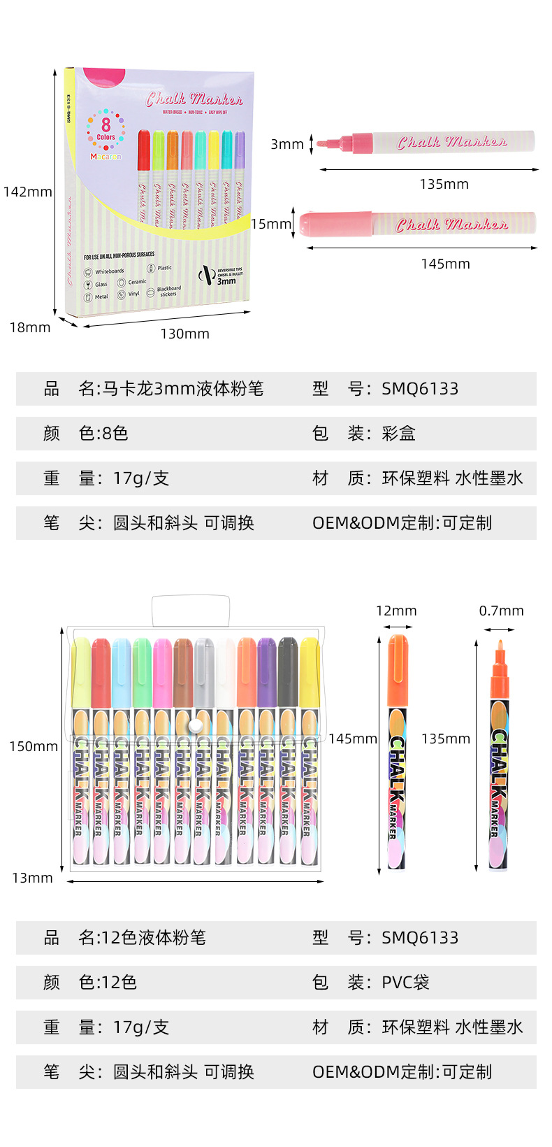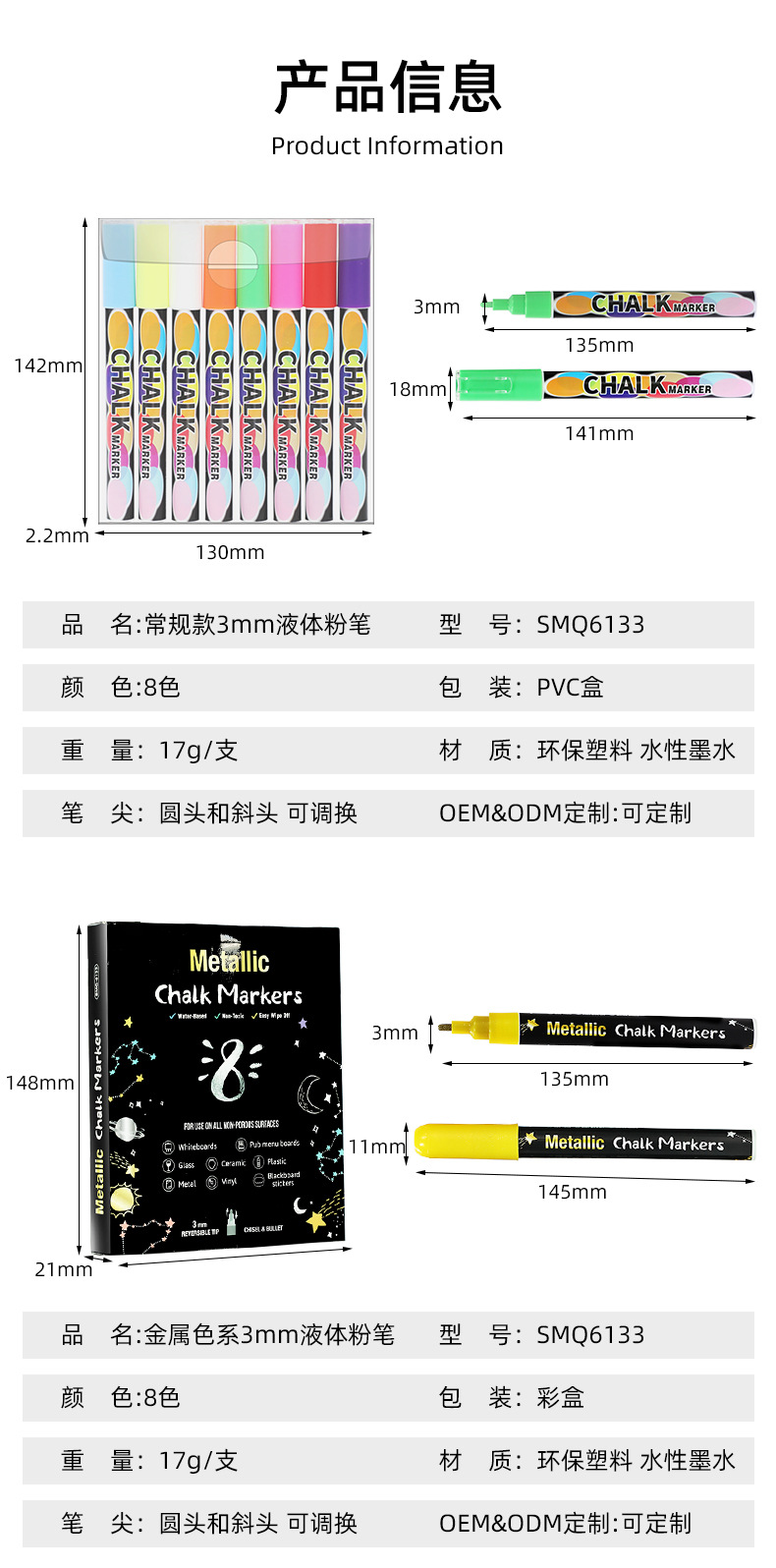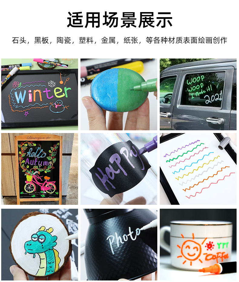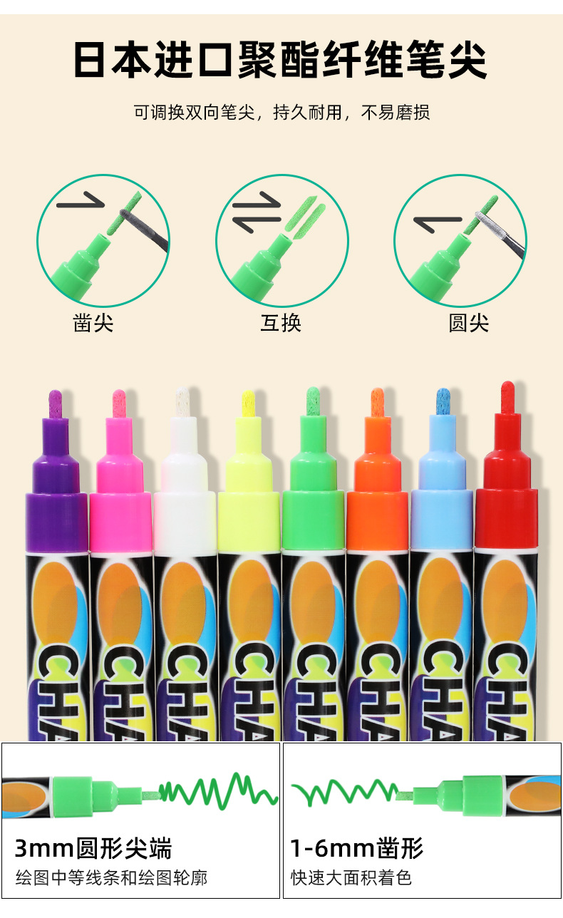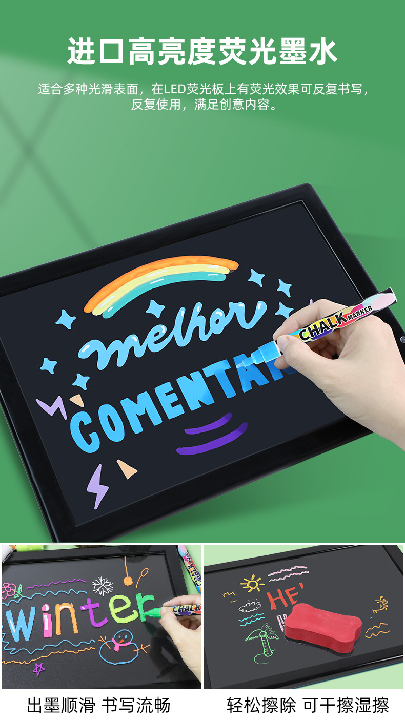 Cross-Border Hot Sale 8 Colors Water-Based Fluorescent Pen Double-Headed Dust-Free Liquid Chalk Writing Implement Children's Painting Watercolor Pen