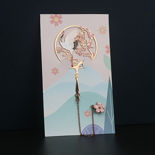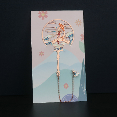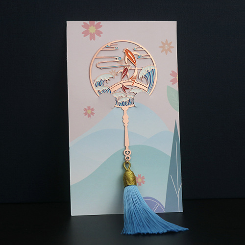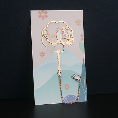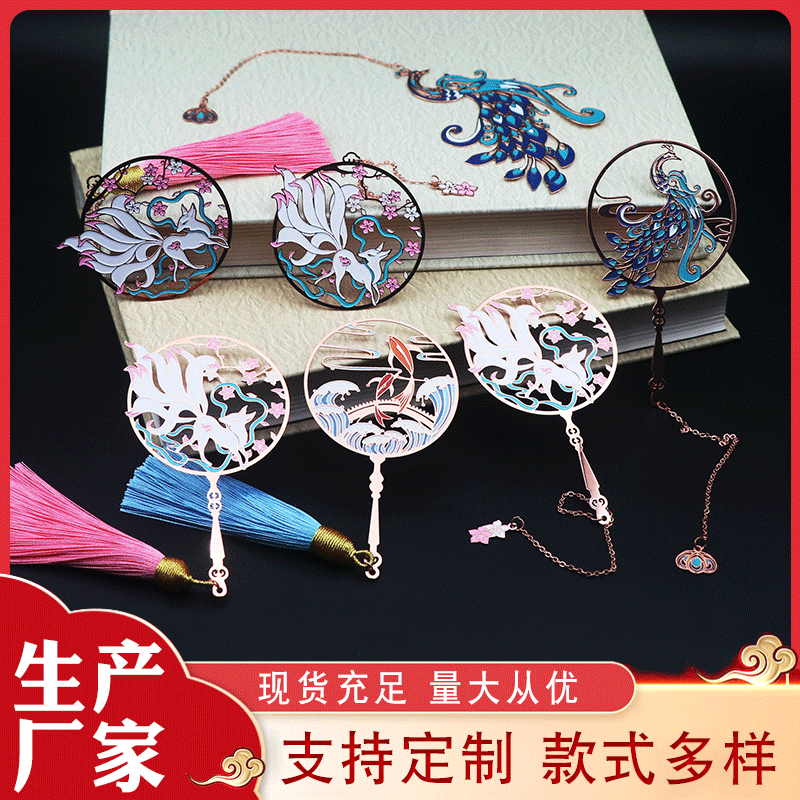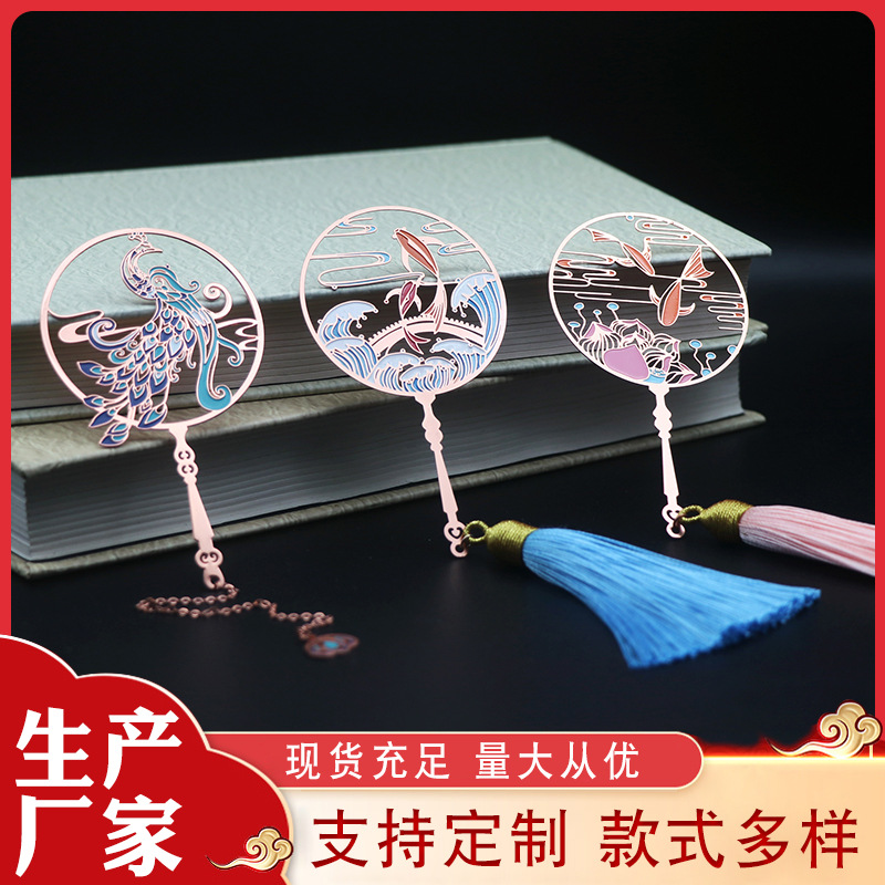 Classical Chinese-style Koi and Peacock Metal Bookmarks with Elegant Hollowed Brass Metal Fan Bookmarks