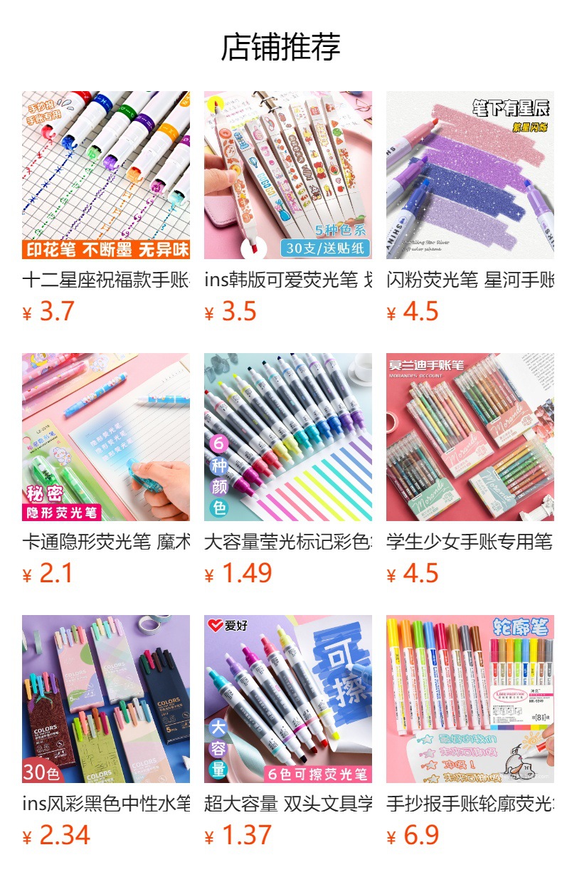 Flower Profile Student Double-Headed Fluorescent Pen Journal Book Wavy Line Drawing Key Curve Color Marking Pen Hook Line