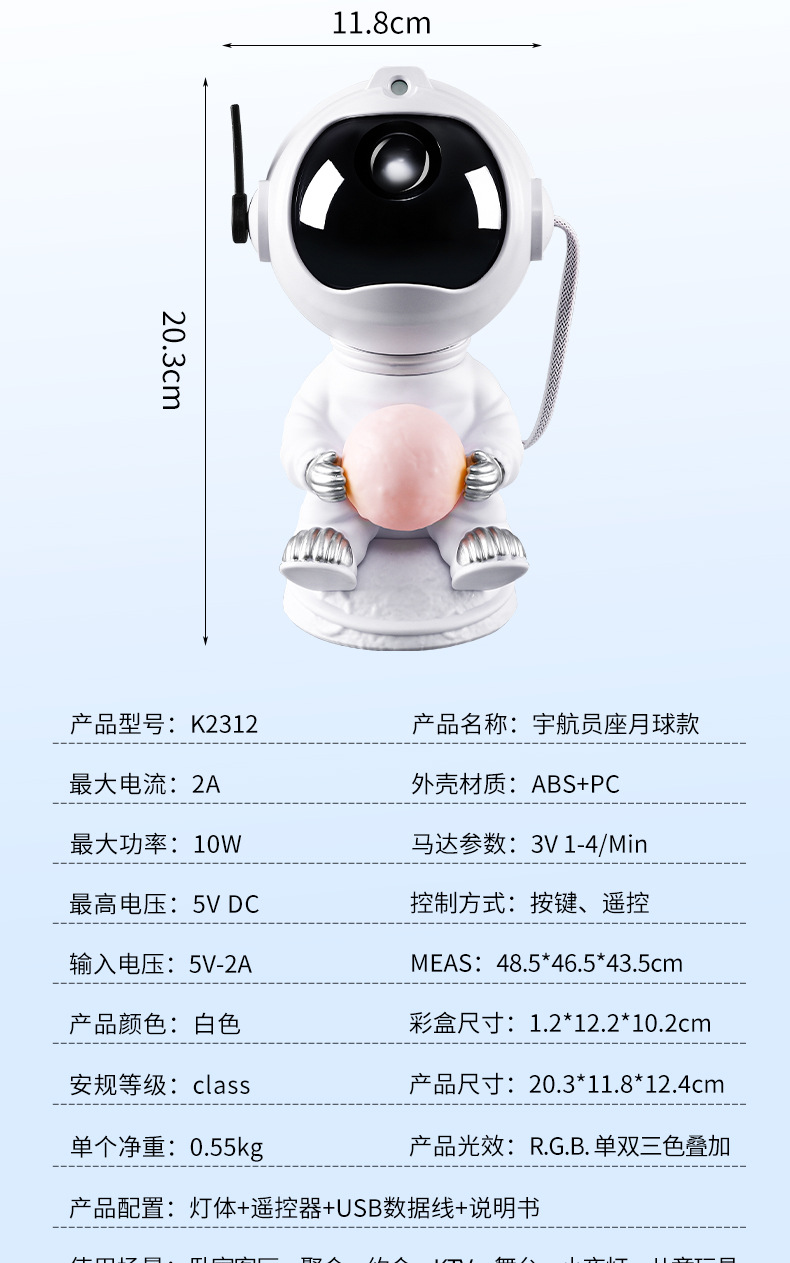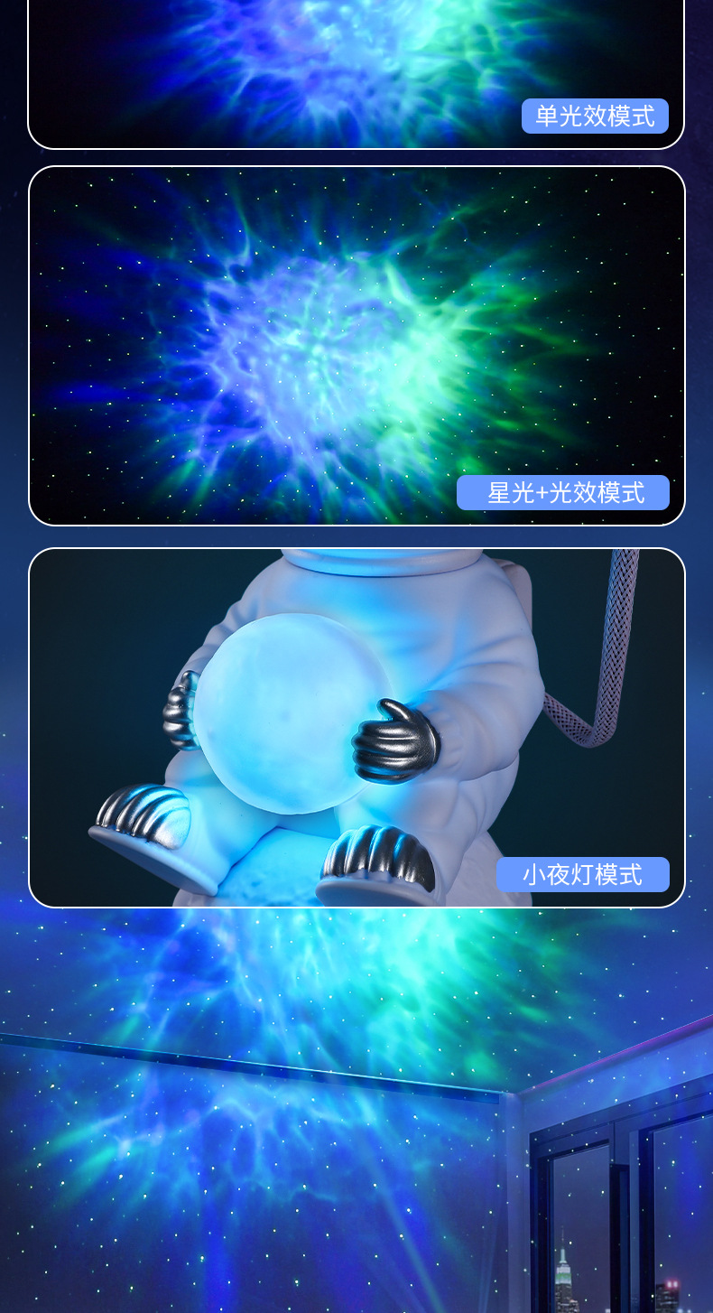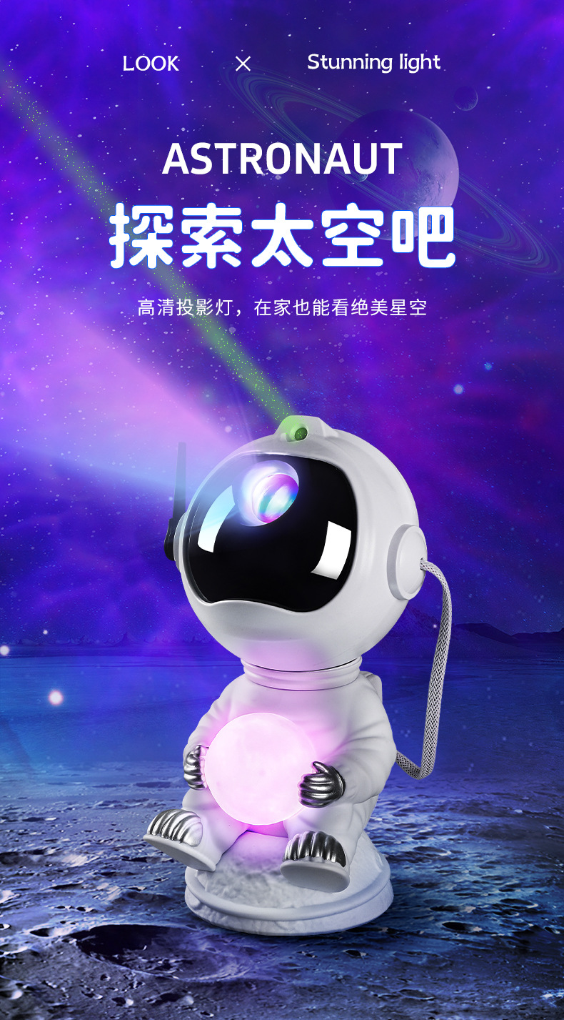 cross-border new arrival sitting astronaut starry sky projection lamp sitting style holding the moon ambience light computer desktop gift decoration