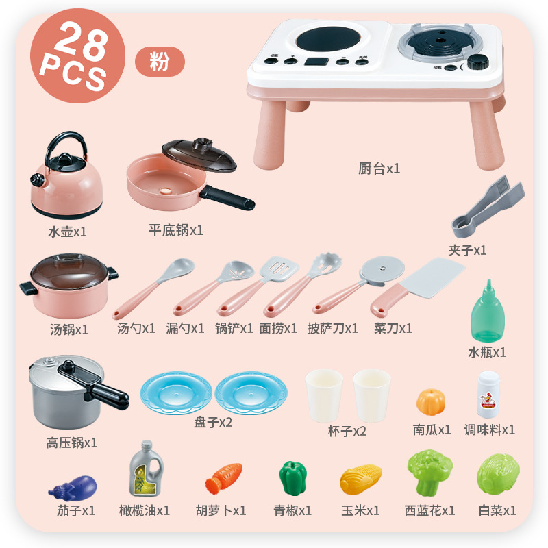 small kitchen table 28 pieces set pink