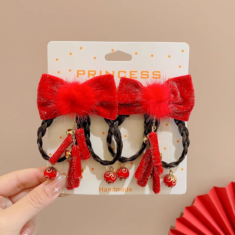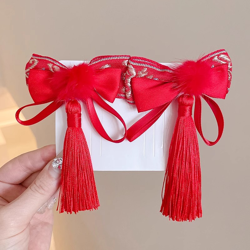 14# red pom-poms bowknot firecrackers tassel a pair of hairclips