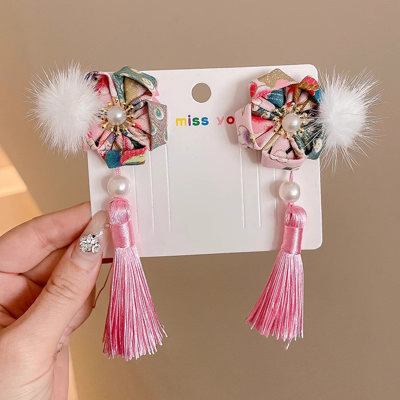 19# hair ball fan tassel a pair of hairclips