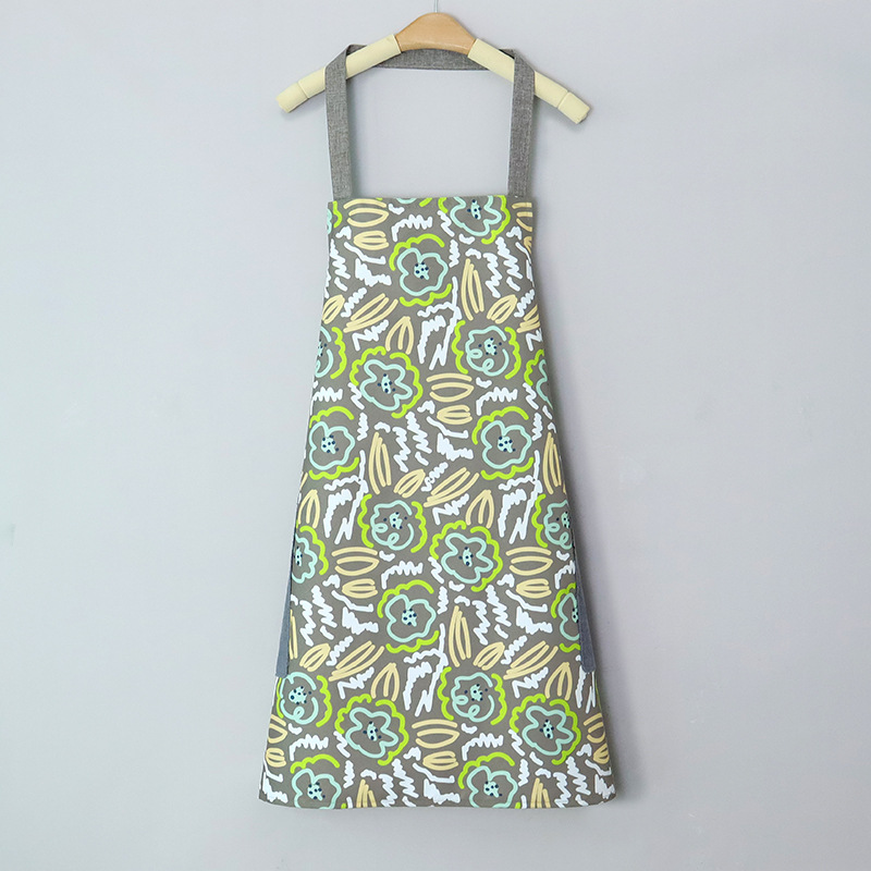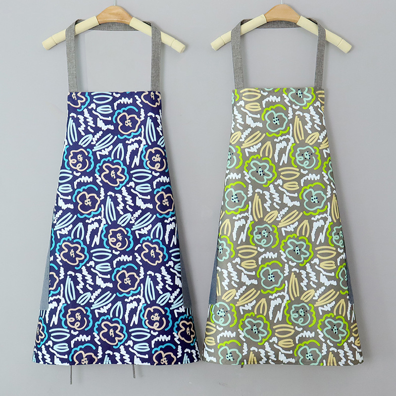 erasable hand apron film large flower household water-repellent cloth large pocket with pocket sleeveless apron oil-proof neck-hanging apron summer