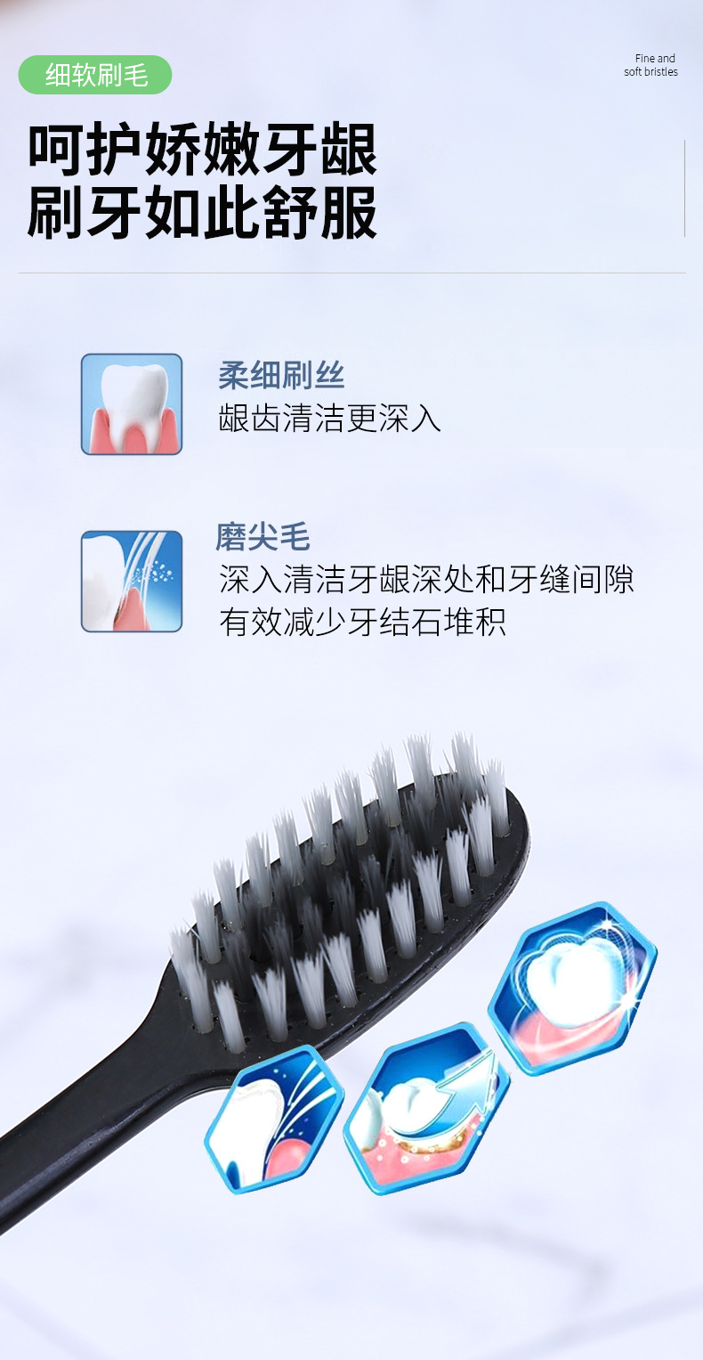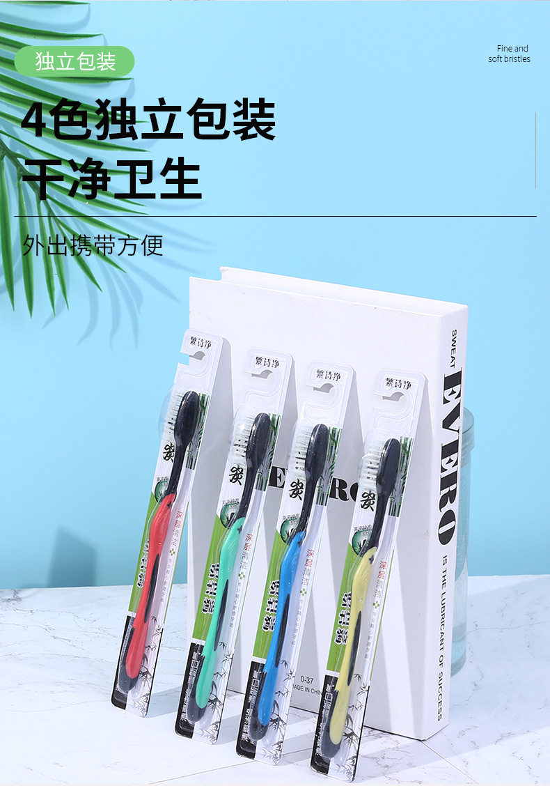 Bamboo Charcoal Toothbrush Doctor Soft-Bristle Toothbrush Independent Packaging Two Yuan Shop Stall Wholesale Family Pack Gift Toothbrush
