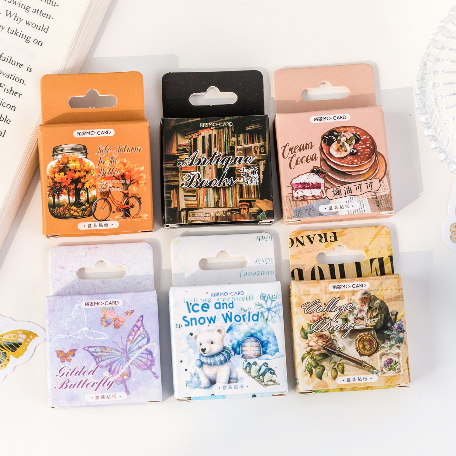 Retro Boxed Stickers Antique Books Series Mini Creative Butterfly Decorative Gift Box Journal Material Collage