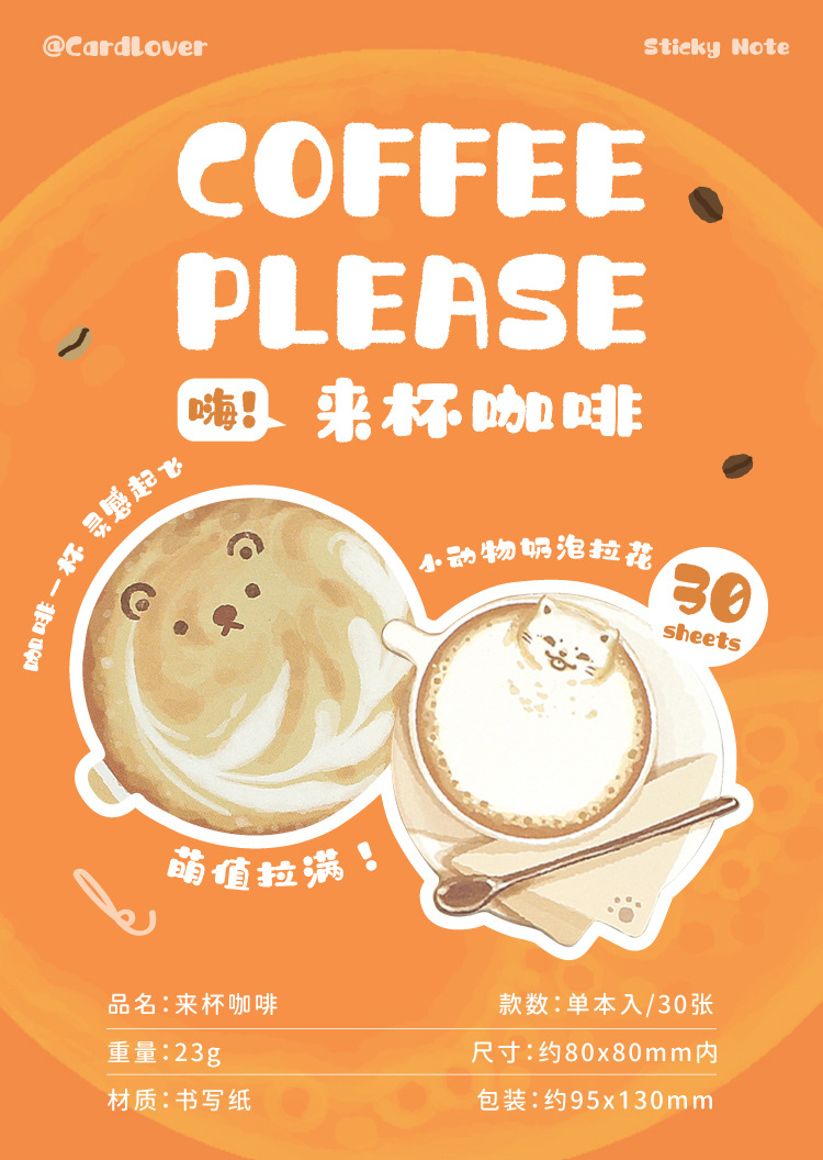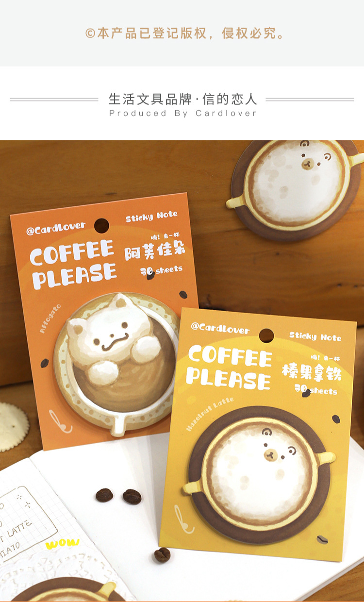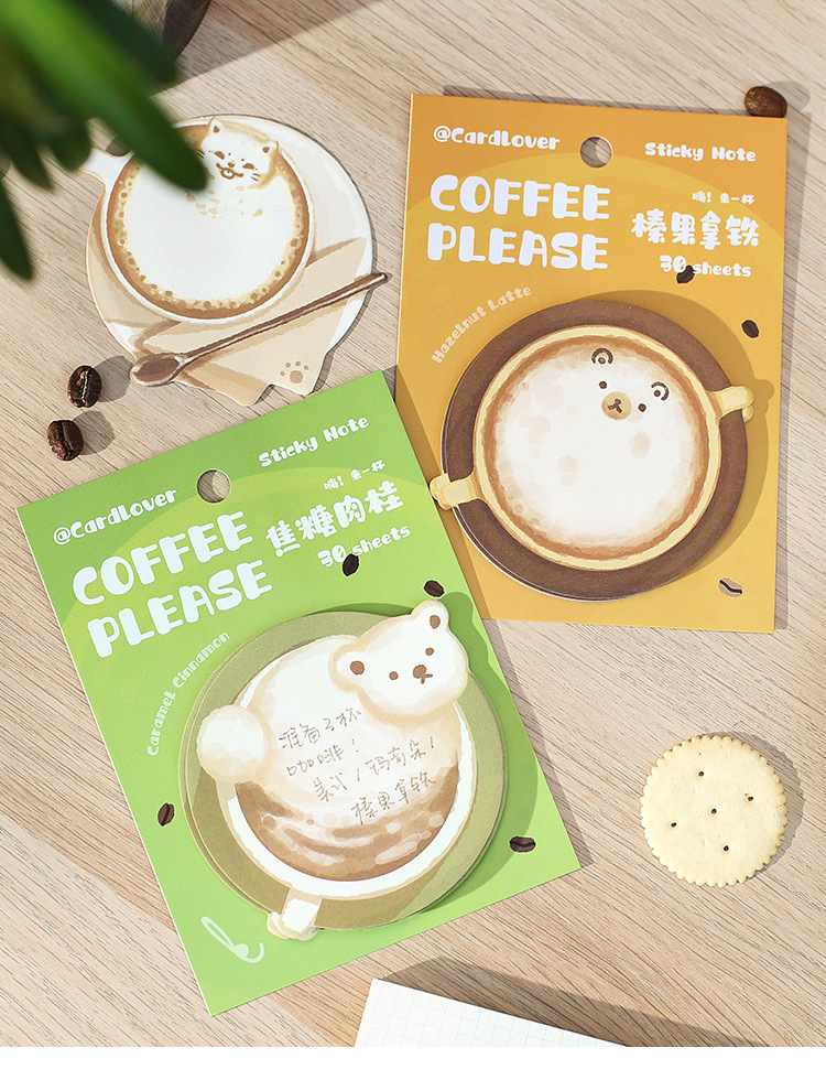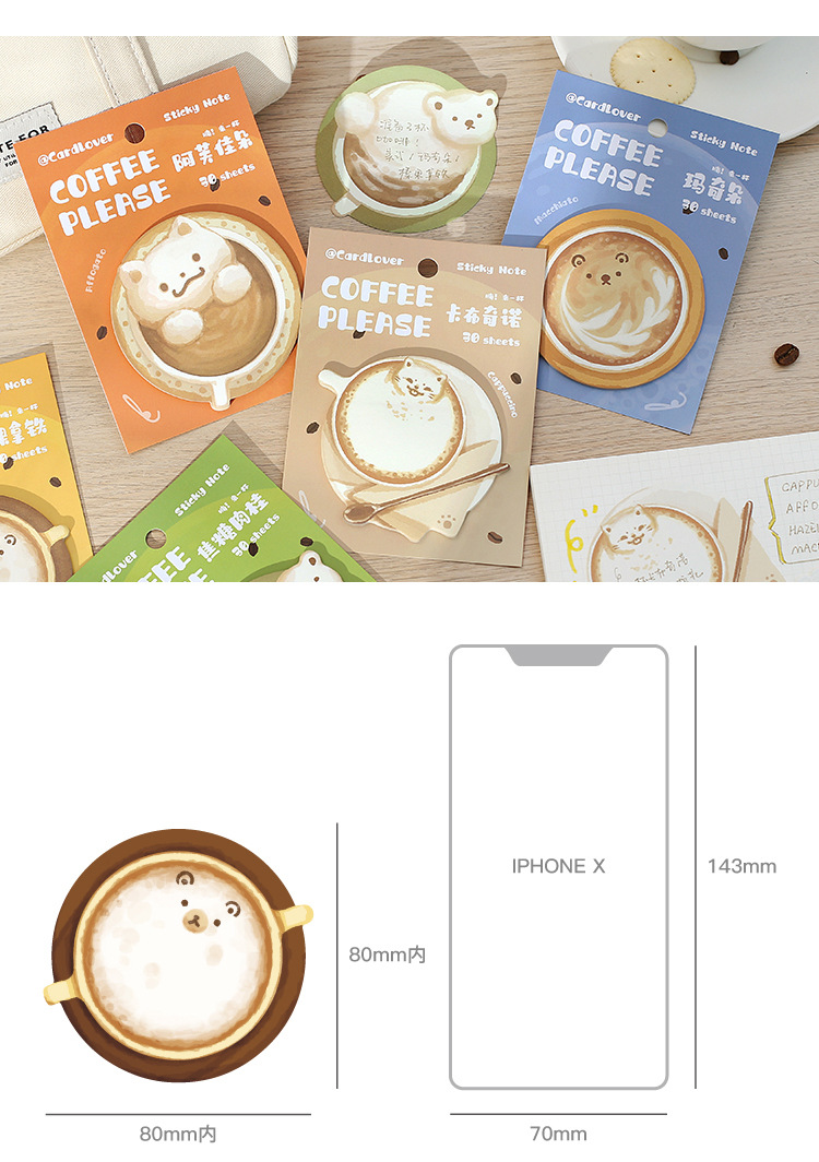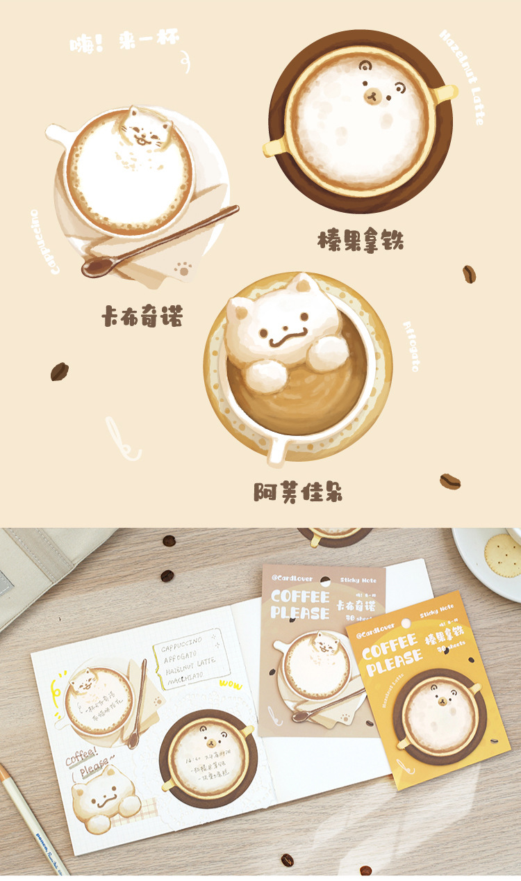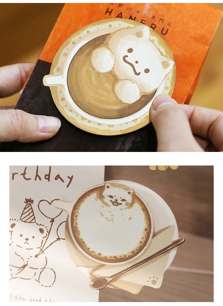Sticky Note Cup Coffee Series Cute Cat Student Message Memo Journal Collage Material