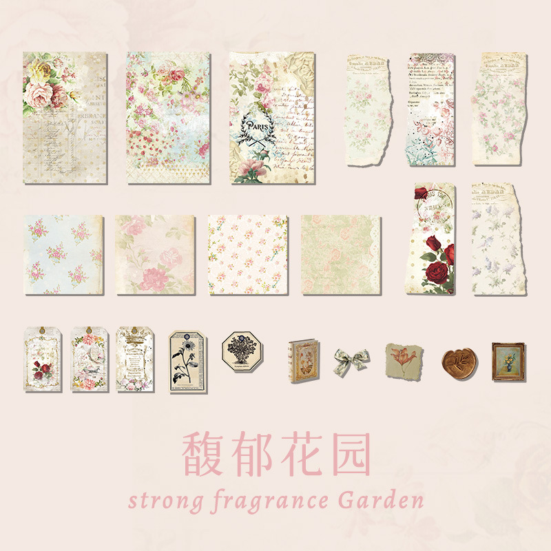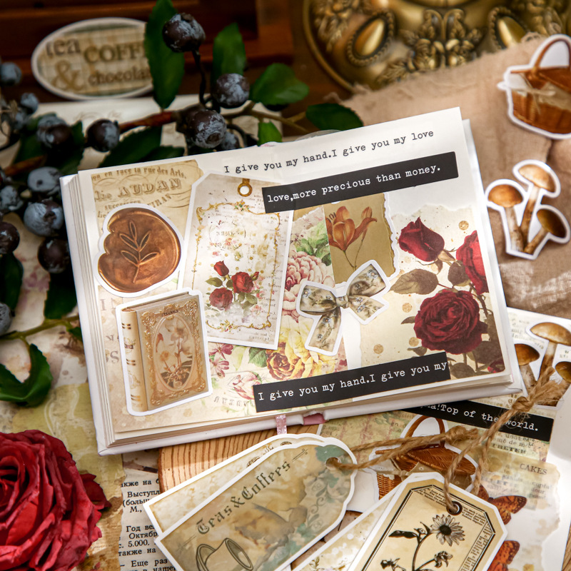 Material Paper Memory Collection Series Retro English Flower Tearable Decoration Notebook Diy Mosaic Stickers