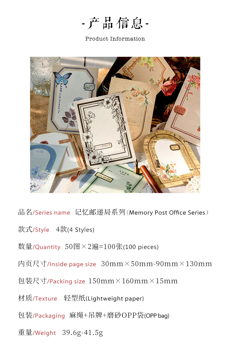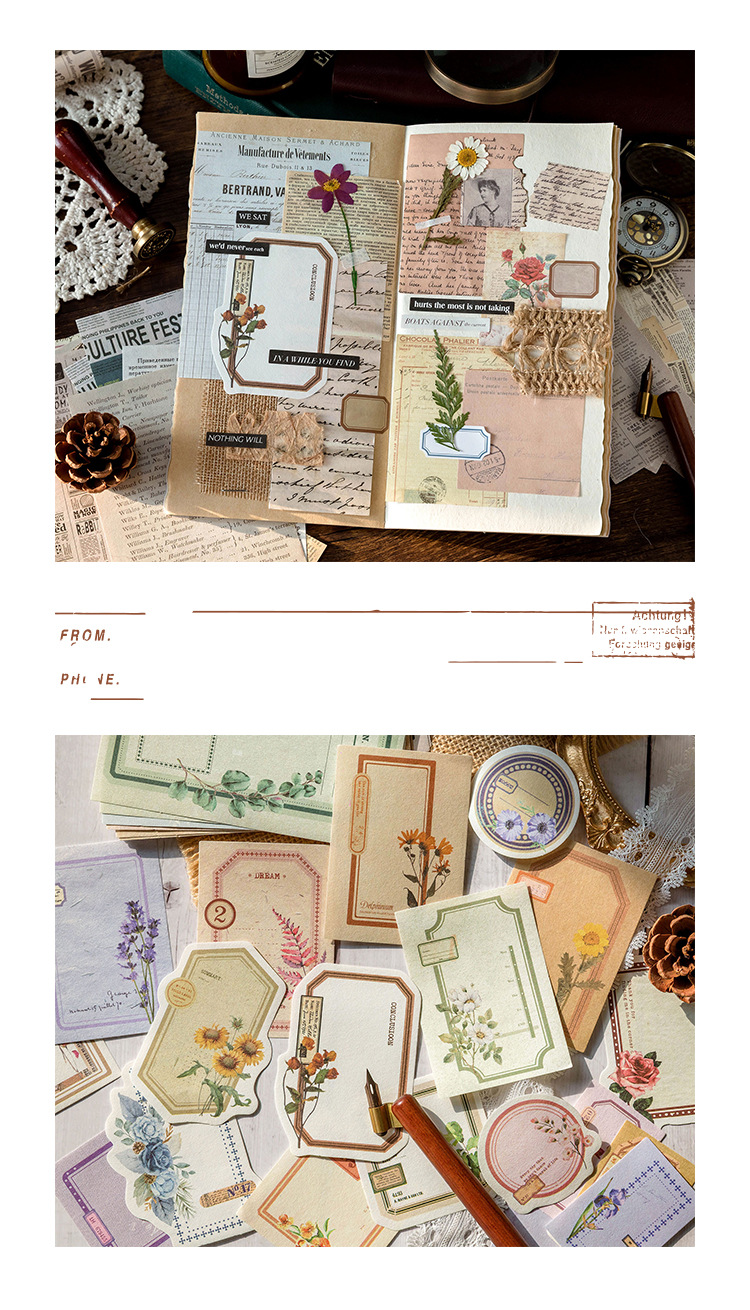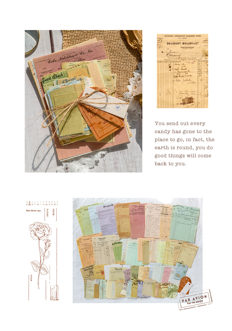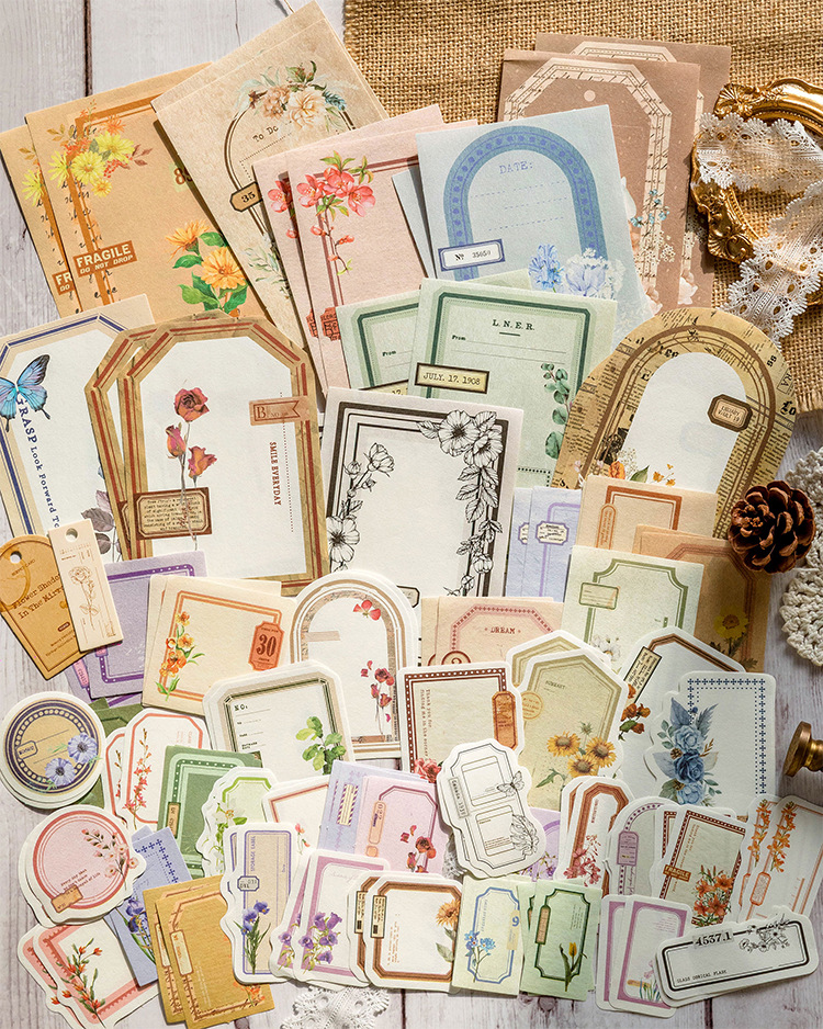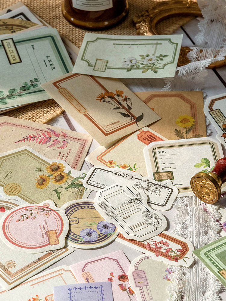 Memory Post Office Series Sample Data Vintage Bill Plant Butterfly Text Label Notebook Collage Decoration