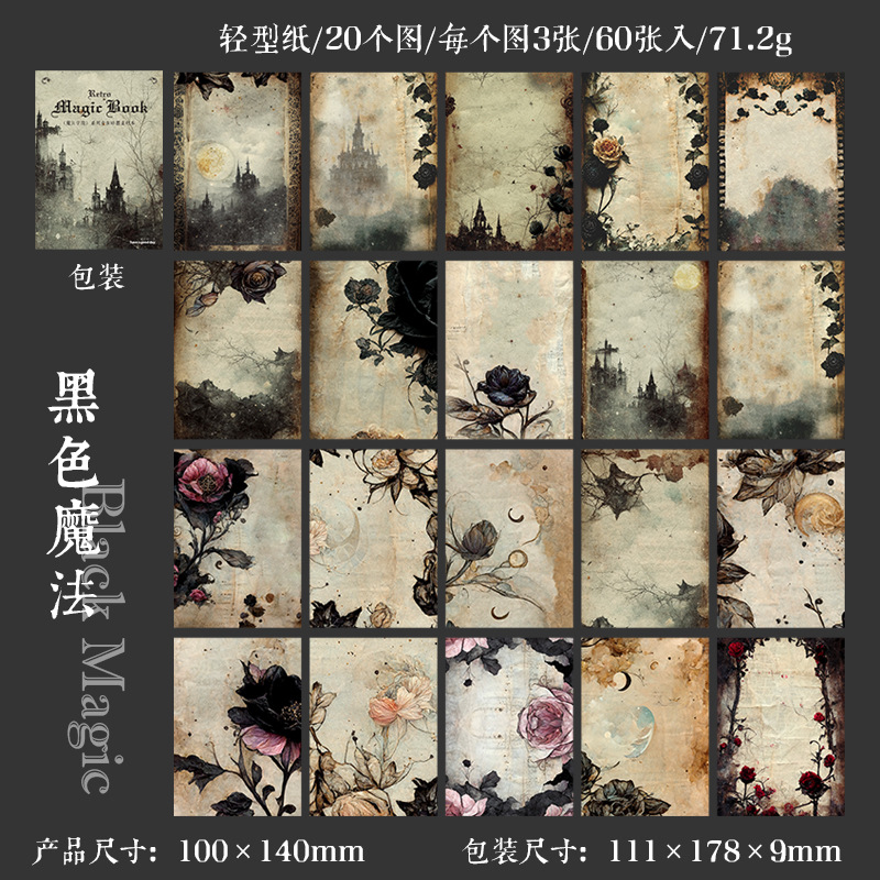 Magic College Series Material Book Retro Dark Series Writable Journal Landscape Base Paper