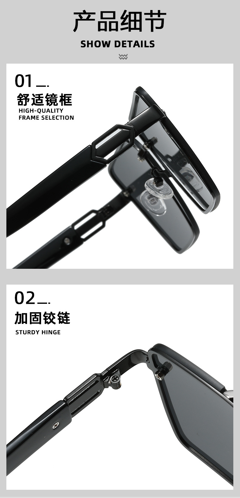 black frame black and grey lens