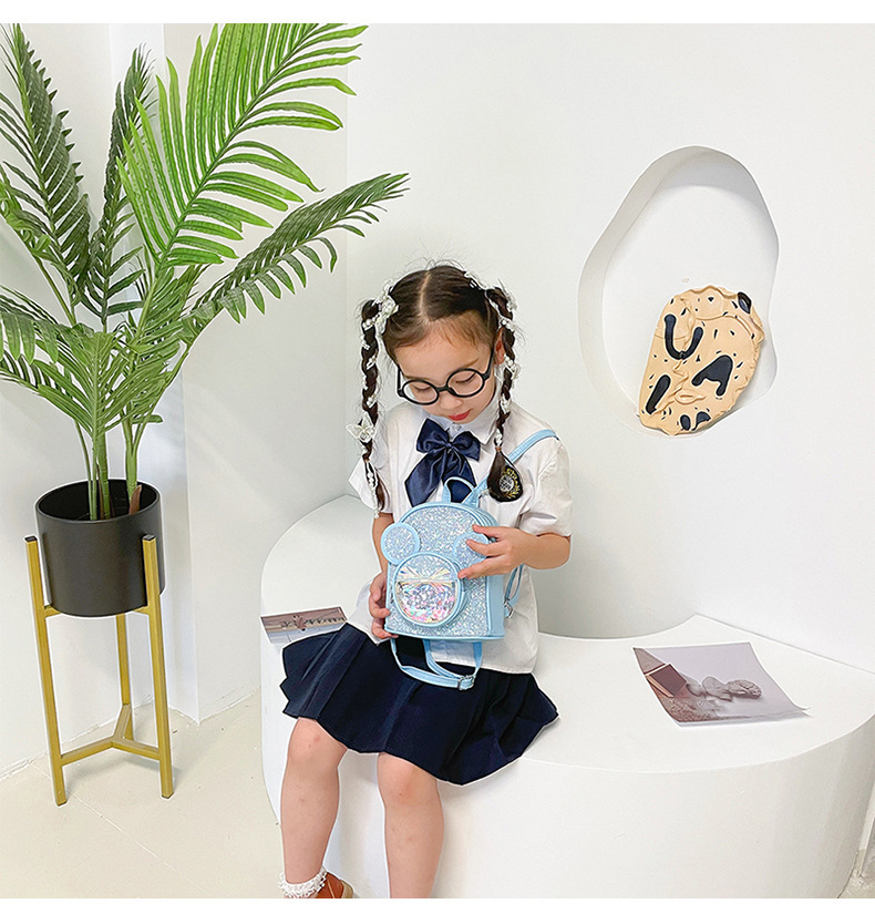 New Sequined Children's Bag Cute Cartoon Princess Mickey Backpack Women's Fashion Casual Western Style Kindergarten Back