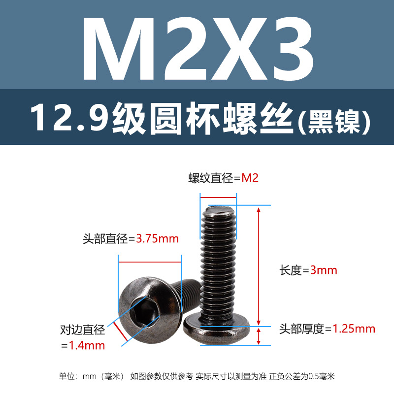 m2.5 * 3 black nickel (500 pcs)(12.9 grade round cup)