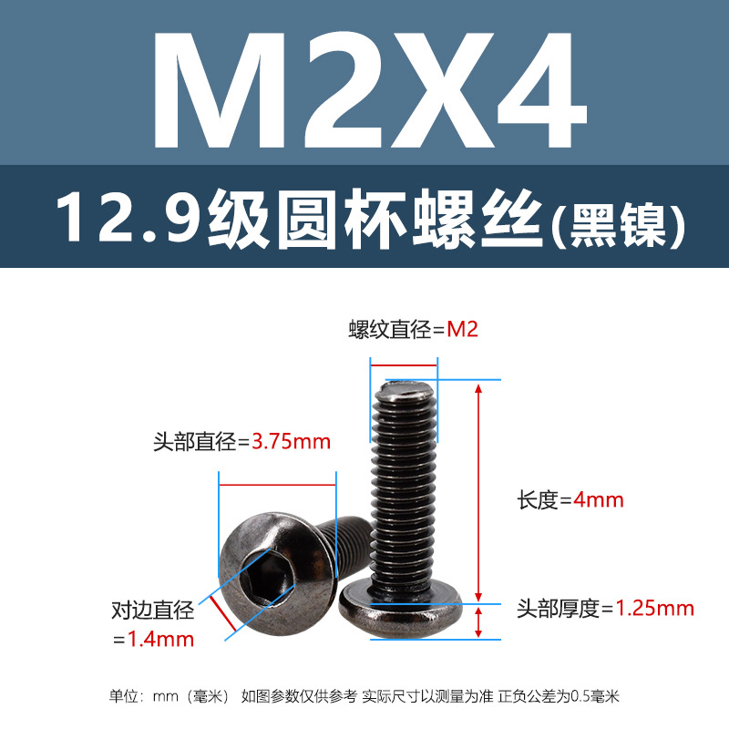 m2.5 * 4 black nickel (500 pcs)(12.9 grade round cup)