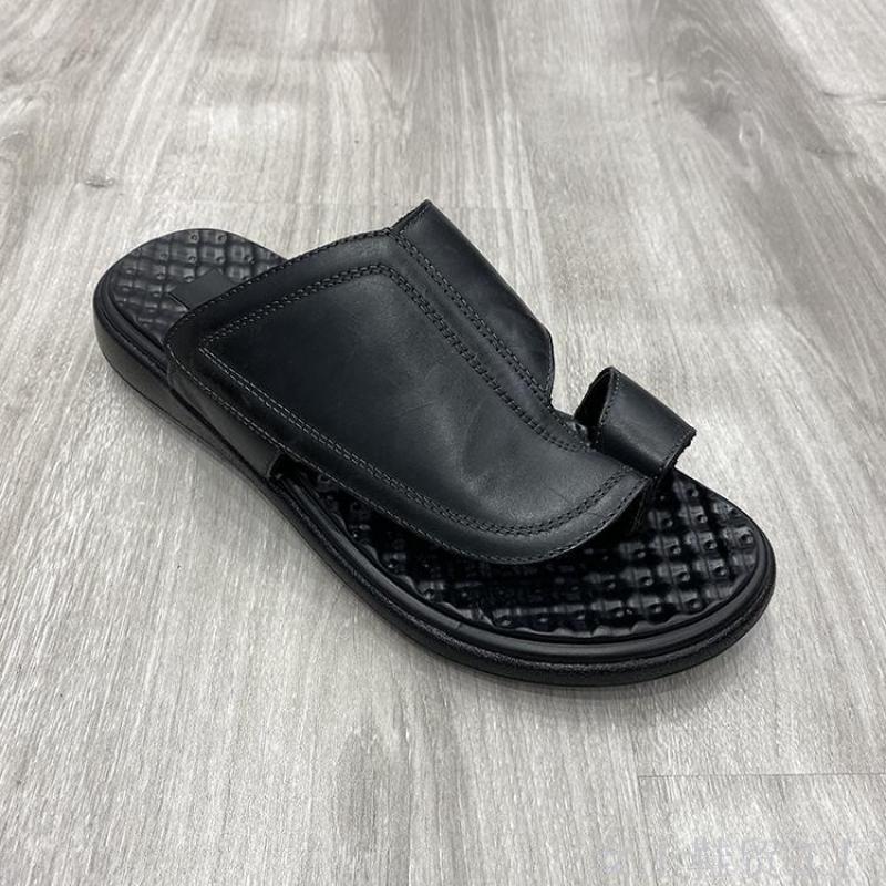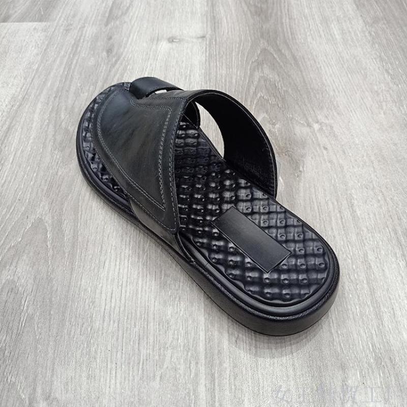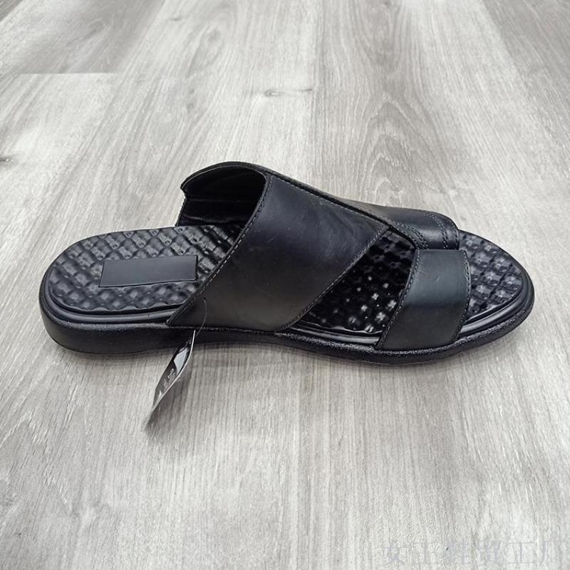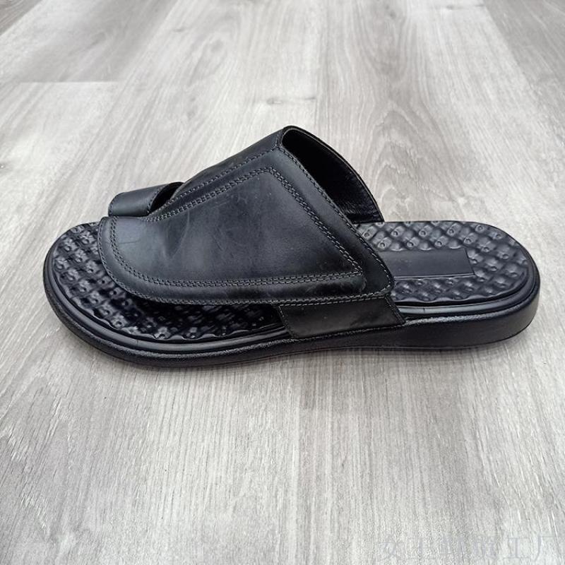 customized flip flops open toe genuine leather men's comfortable and breathable slippers men