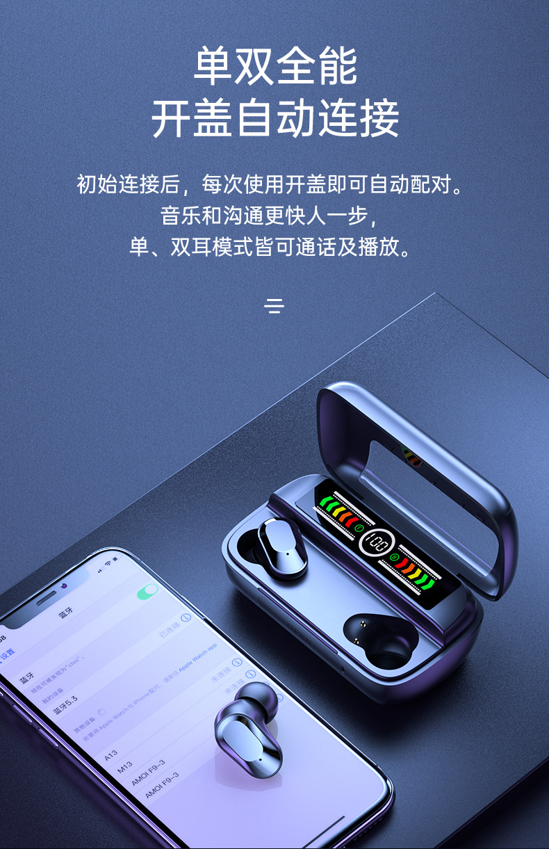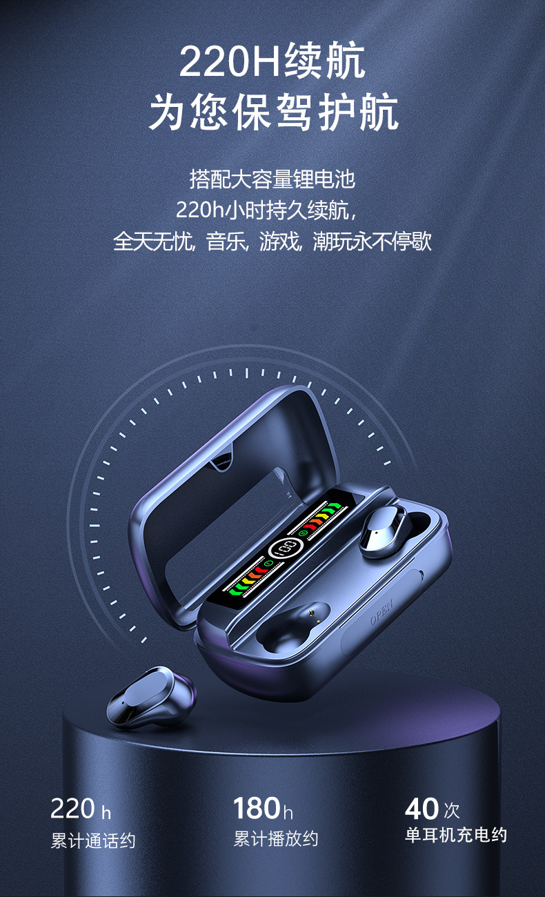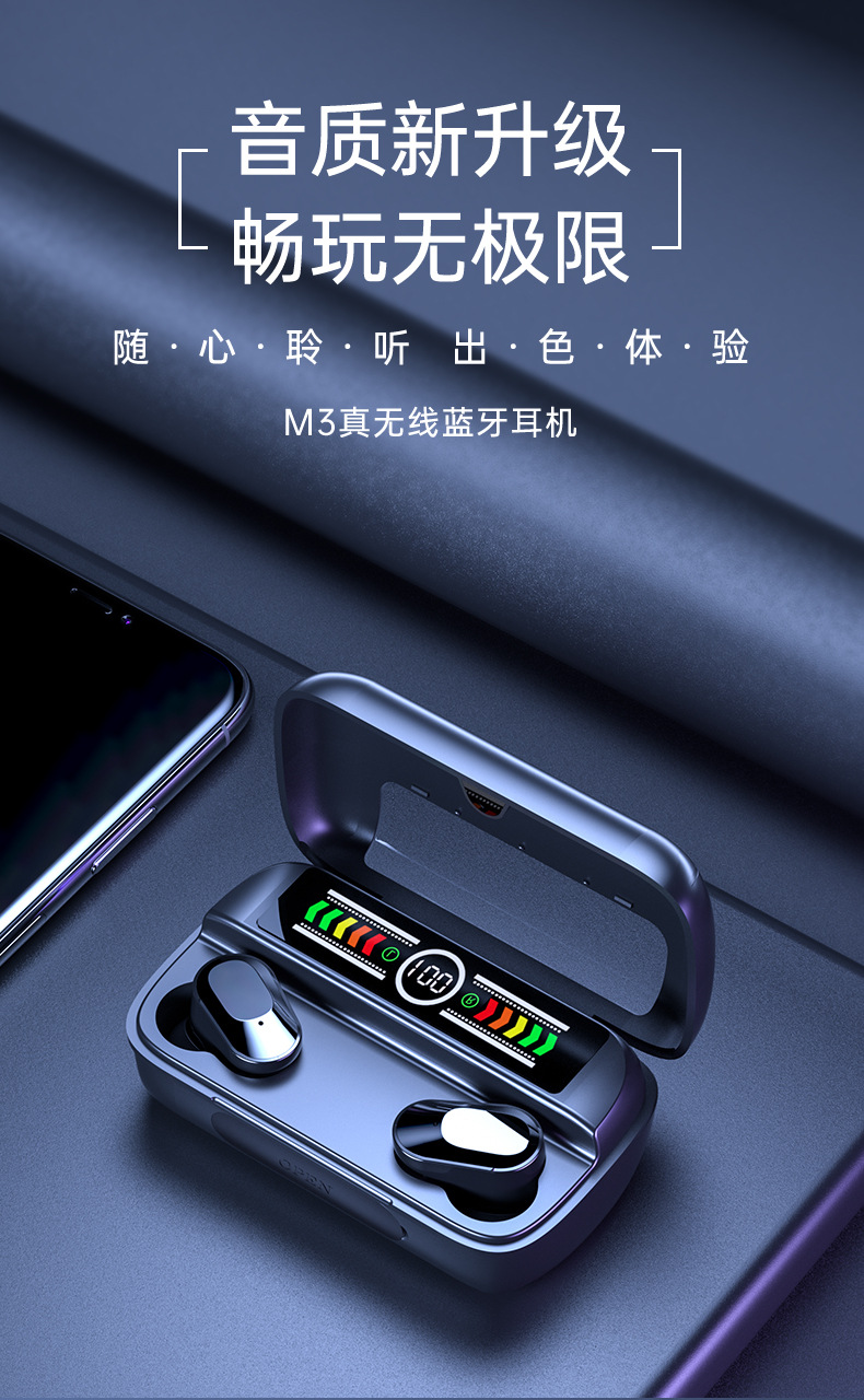 cross-border hot m3 color screen bluetooth headset binaural cool horse running breathing light low latency a20 blue music headset