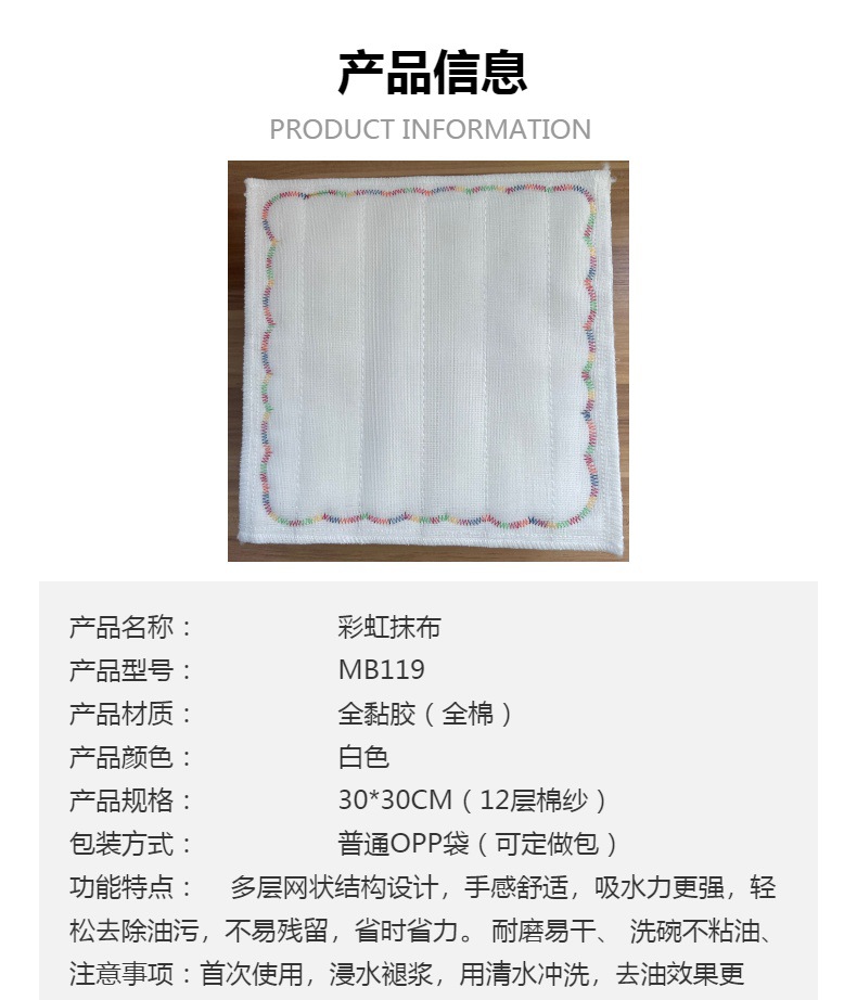 Popular Rainbow Oleophobic Cloth Thickened White Cotton Yarn Dishcloth Oil-Free Scouring Pad Kitchen Absorbent Dish Towel
