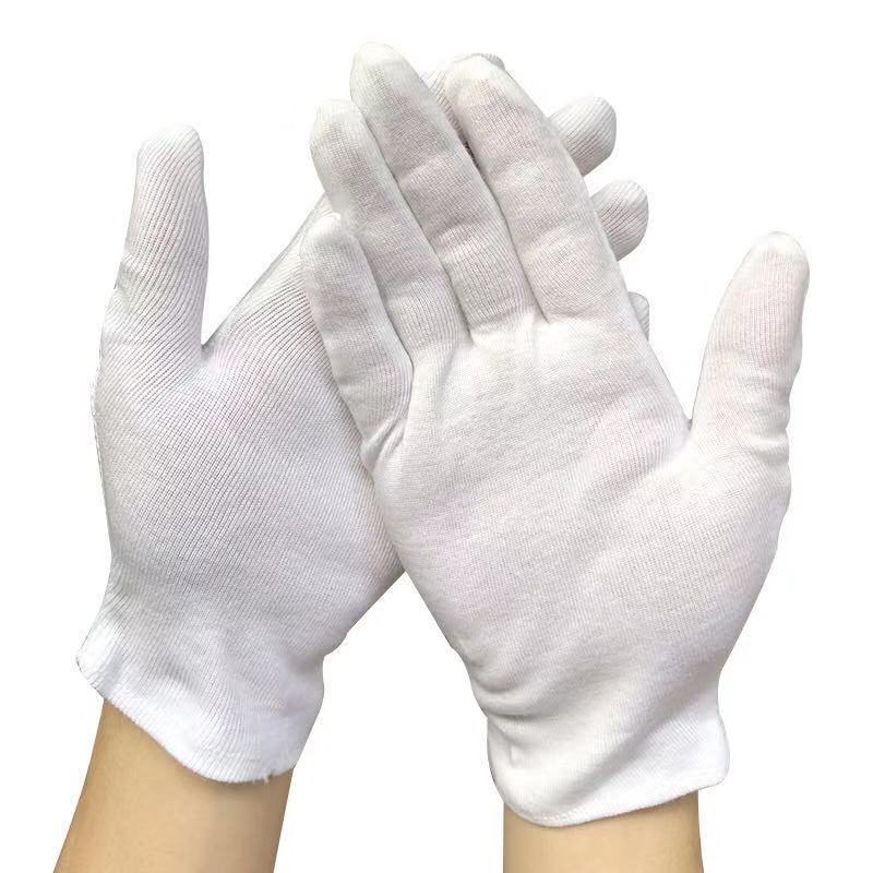 Factory Direct Sales Thread White Pure Cotton Gloves Labor Protection Work Gloves Etiquette Crafts Bead Playing Cotton Jersey Gloves Wholesale