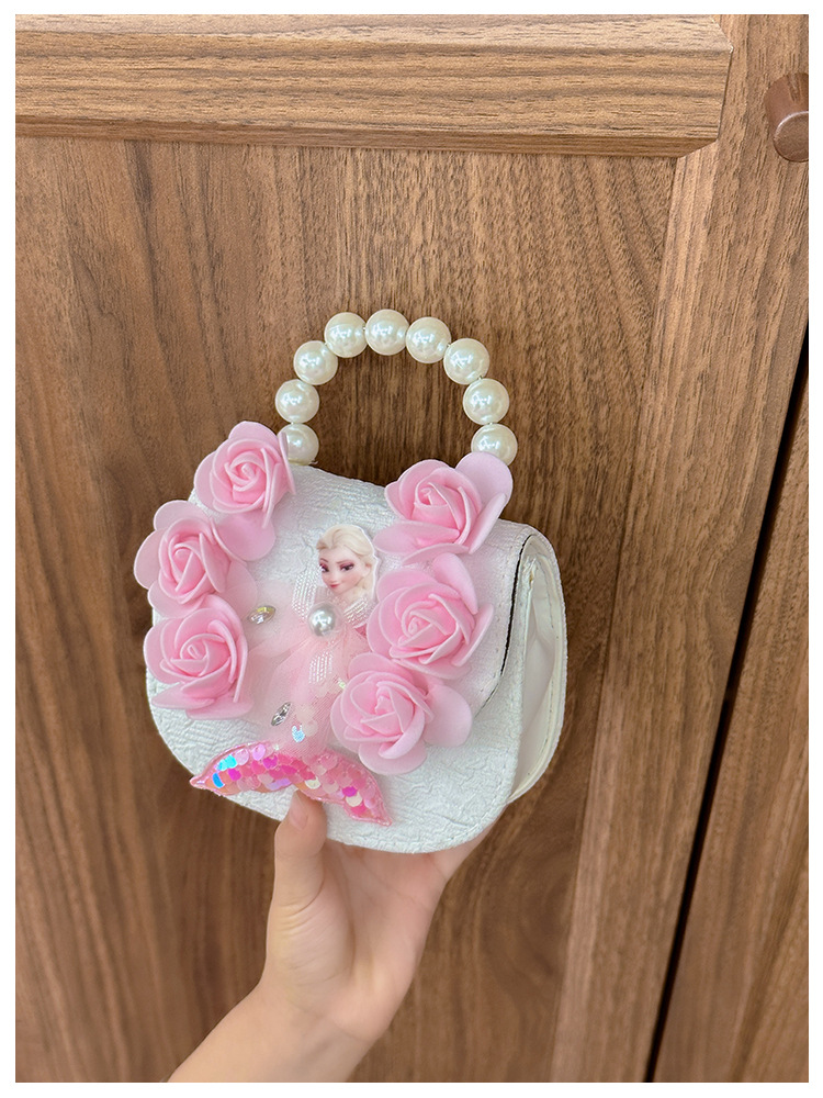 new girls' single-shoulder bag cute lace princess bag fashion pearl tote flower mermaid crossbody bag wholesale