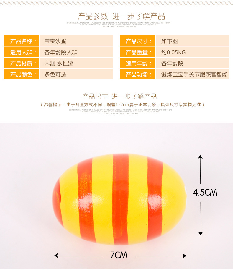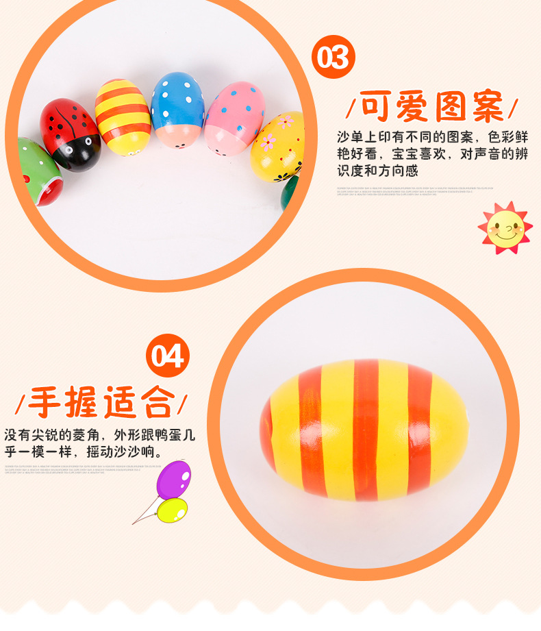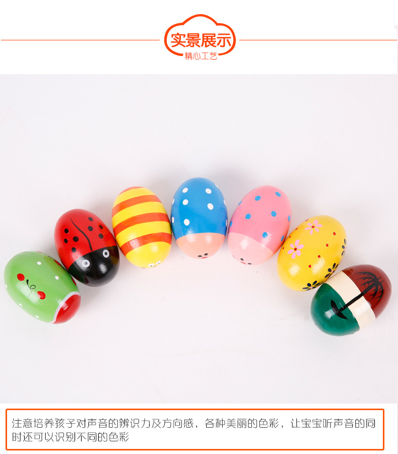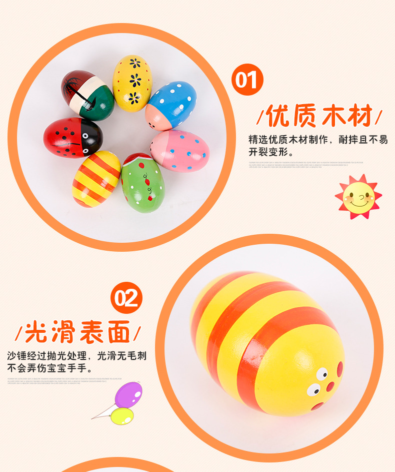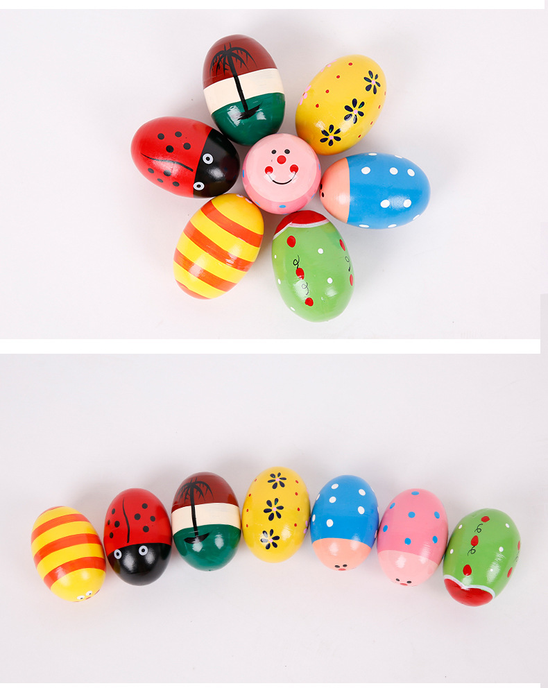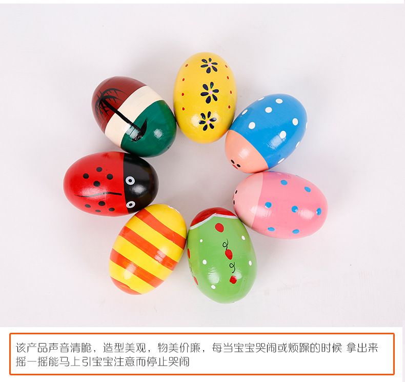 Wooden Multicolor, Large Sand Egg Cartoon Wooden Egg Wooden Maracas Wooden Egg Early Education Toy Factory Direct