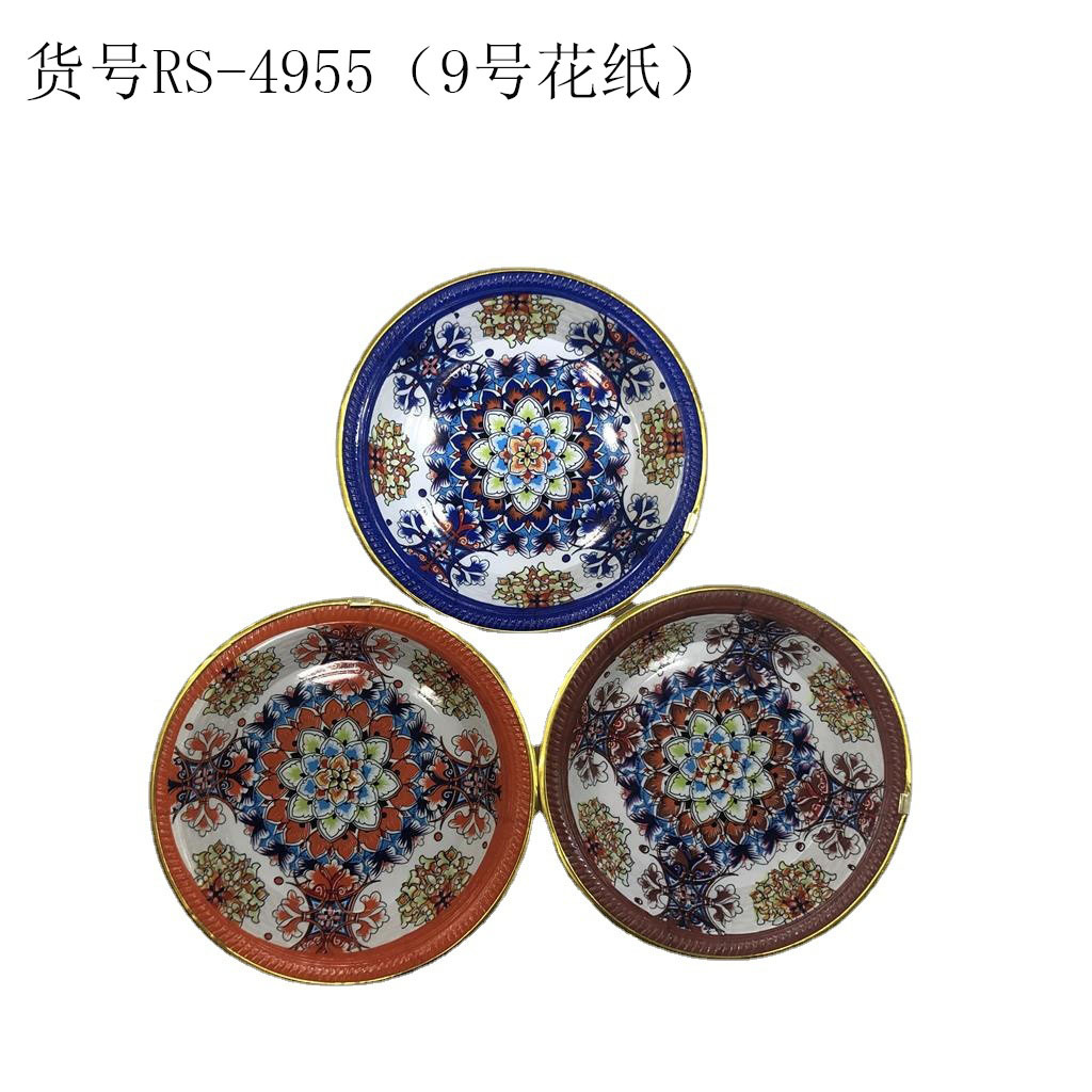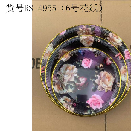 The new round fruit dish/gold-rimmed fruit dish/multiple patterned flower paper dish is made of high-quality PP material with various patterned flower papers. The material does not contain BPA (BPA free). The style is simple and elegant, with a futuristic and fashionable appearance. It has high strength, good hardness, good luster, smooth hand feeling, anti-aging, long life, easy to clean dust and oil stains, good resistance to stains, and can maintain good toughness at low temperatures. It is durable, convenient to store, and the edge of the fruit dish is wrapped with a golden edge, which instantly elevates the level of the flower paper dish, making it look more elegant. The fruit dish can be used to hold fruits, vegetables, or small snacks such as peanuts and seeds, which is very practical. It is your good partner at home and is a choice for family gatherings/family picnics/dessert and bread shop display.