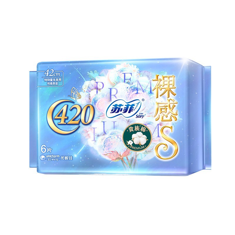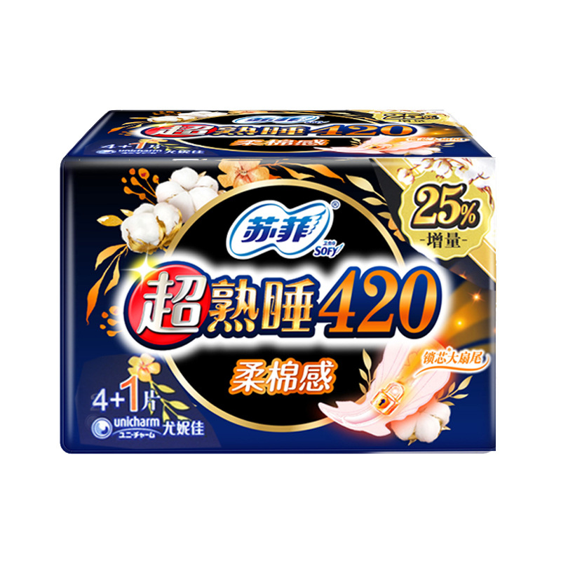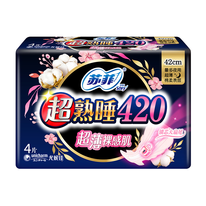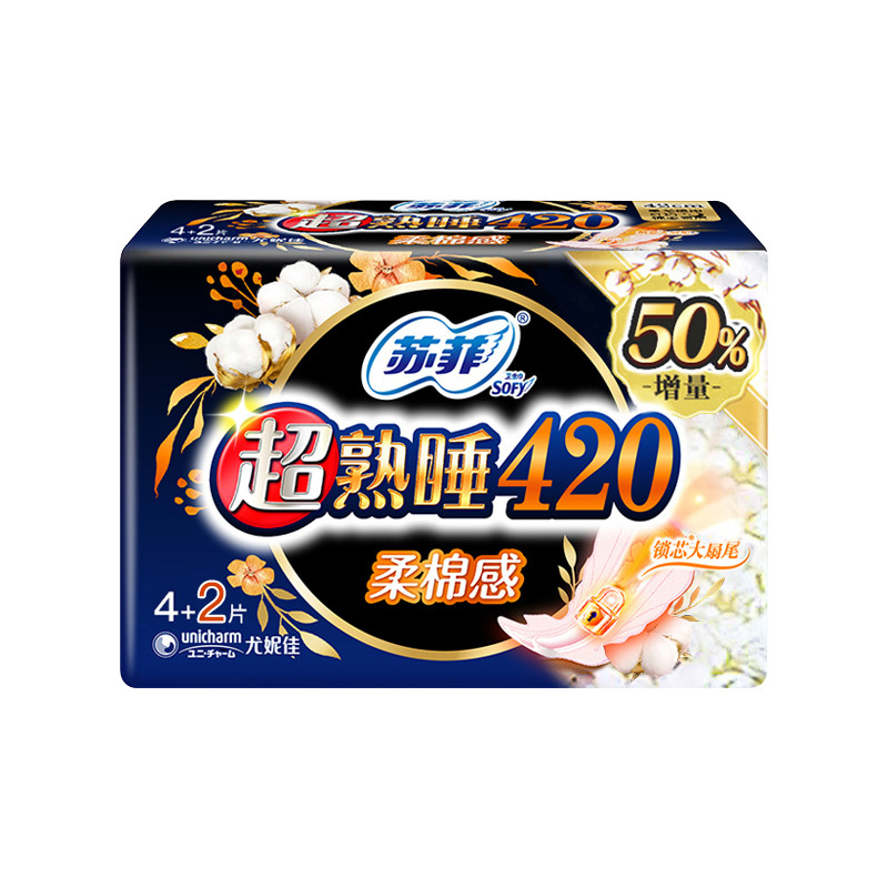 super deep sleep soft cotton feeling 420 night use 4+2 pieces box gauge: 48 packs bar code: 516714