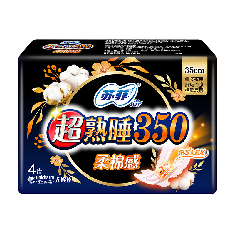 super deep sleep soft cotton feeling 350 night 4 pieces box gauge: 48 packs bar code: 528618