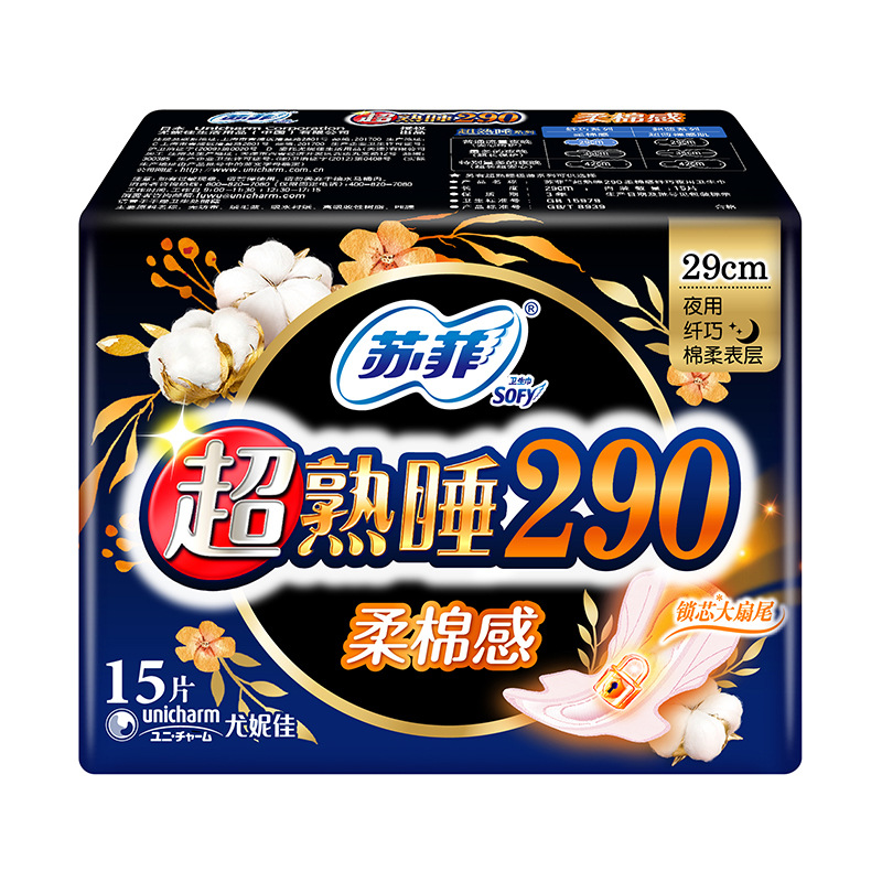 super deep sleep soft cotton feeling 290 use 15 pieces box gauge: 24 packs bar code: 528588
