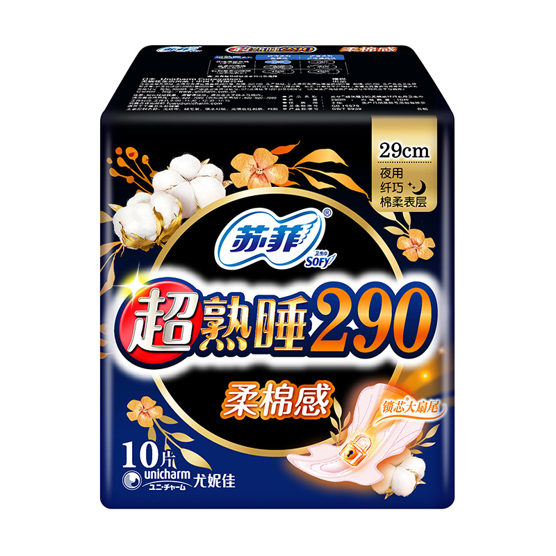 super deep sleep soft cotton feeling 290 use 10 pieces box gauge: 24 packs bar code: 528557