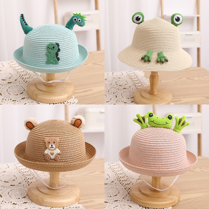 Baby Boy Hat Summer Little Girls' Straw Hat Cartoon Sun Protection Summer Hat Child Sun-Proof 2-5 Years Old Bucket Hat Beach Hat 3