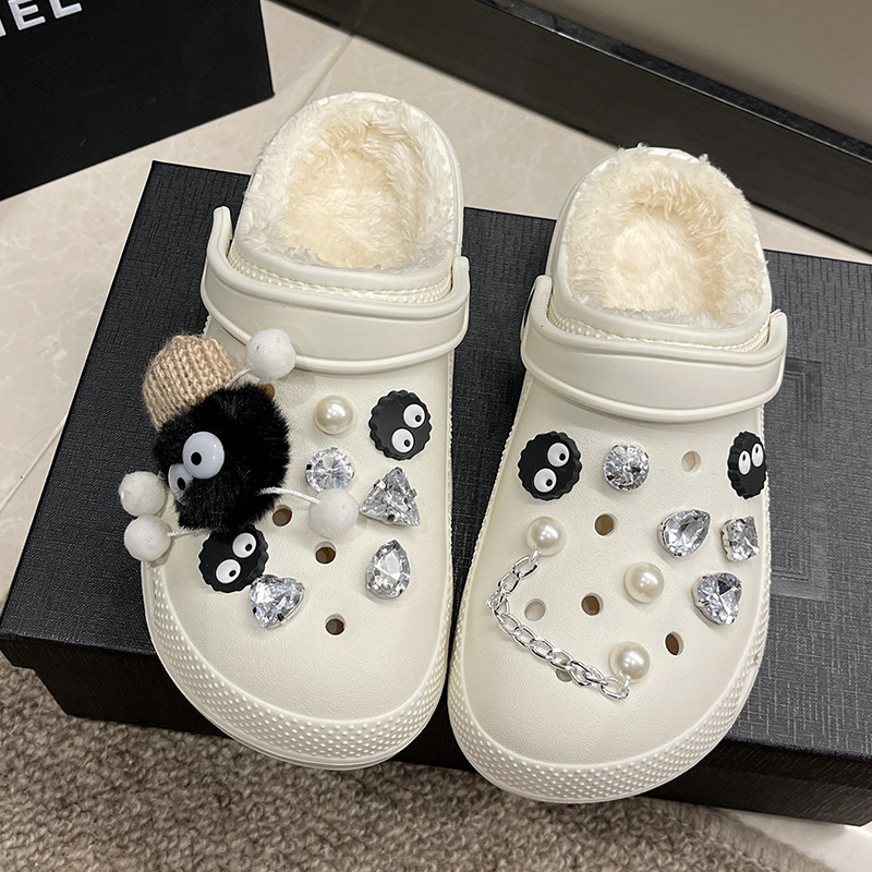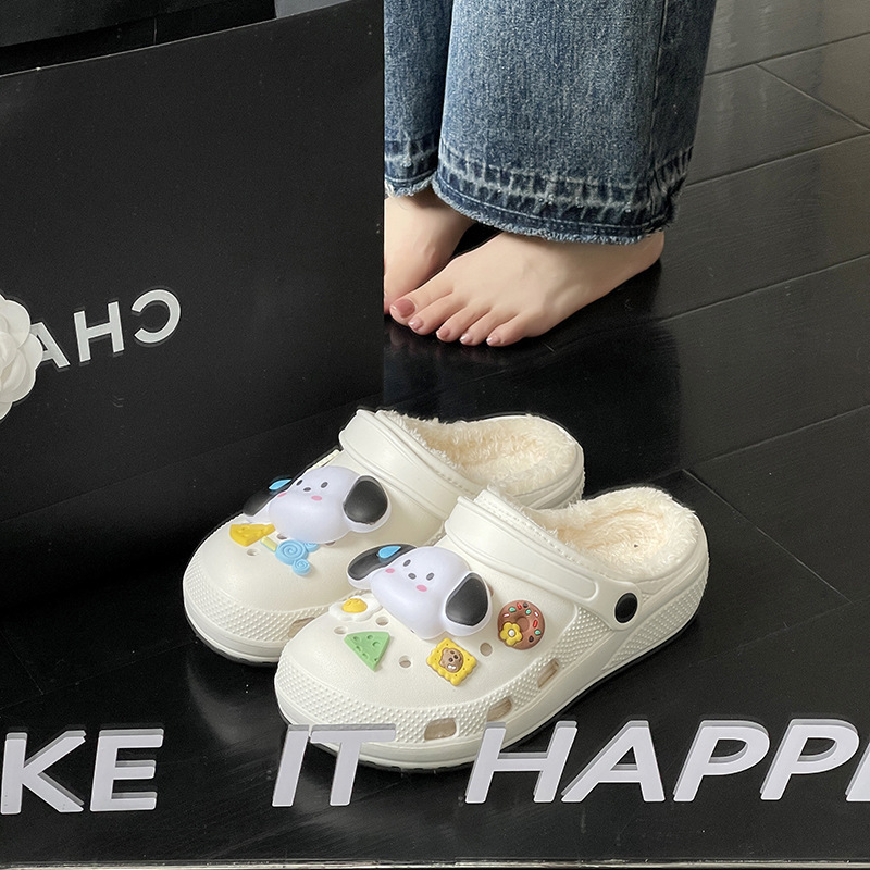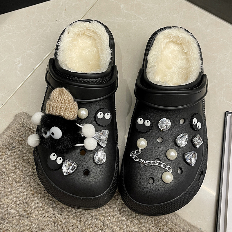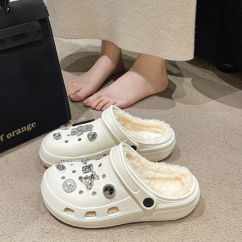 fleece-lined hole shoes for women autumn and winter 2024 new warm cotton slippers removable and washable ins all-matching outer wear loafer