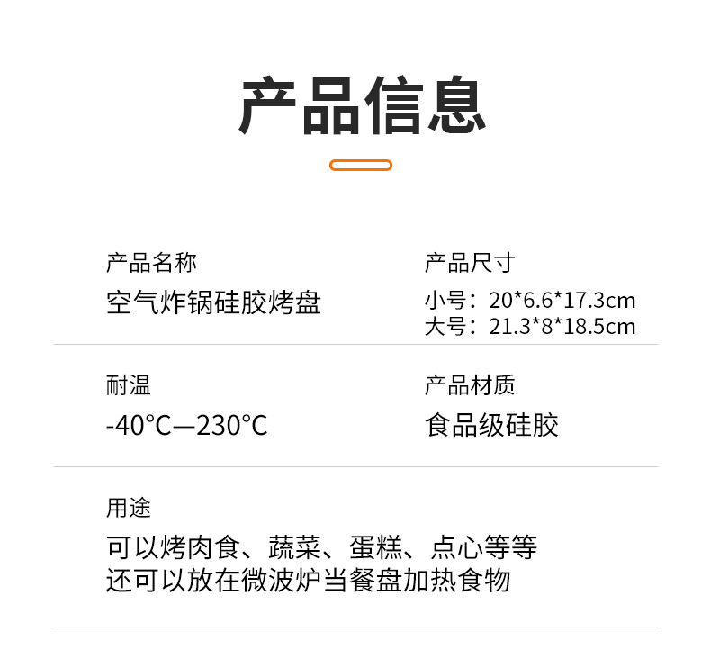 Application: Temperature resistance -40℃ to 260℃, the front side can be used as an air fryer pan/liner, and the reverse side can be used as a cake mold.