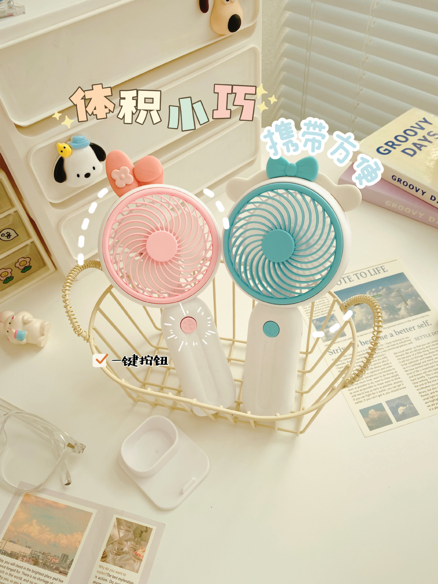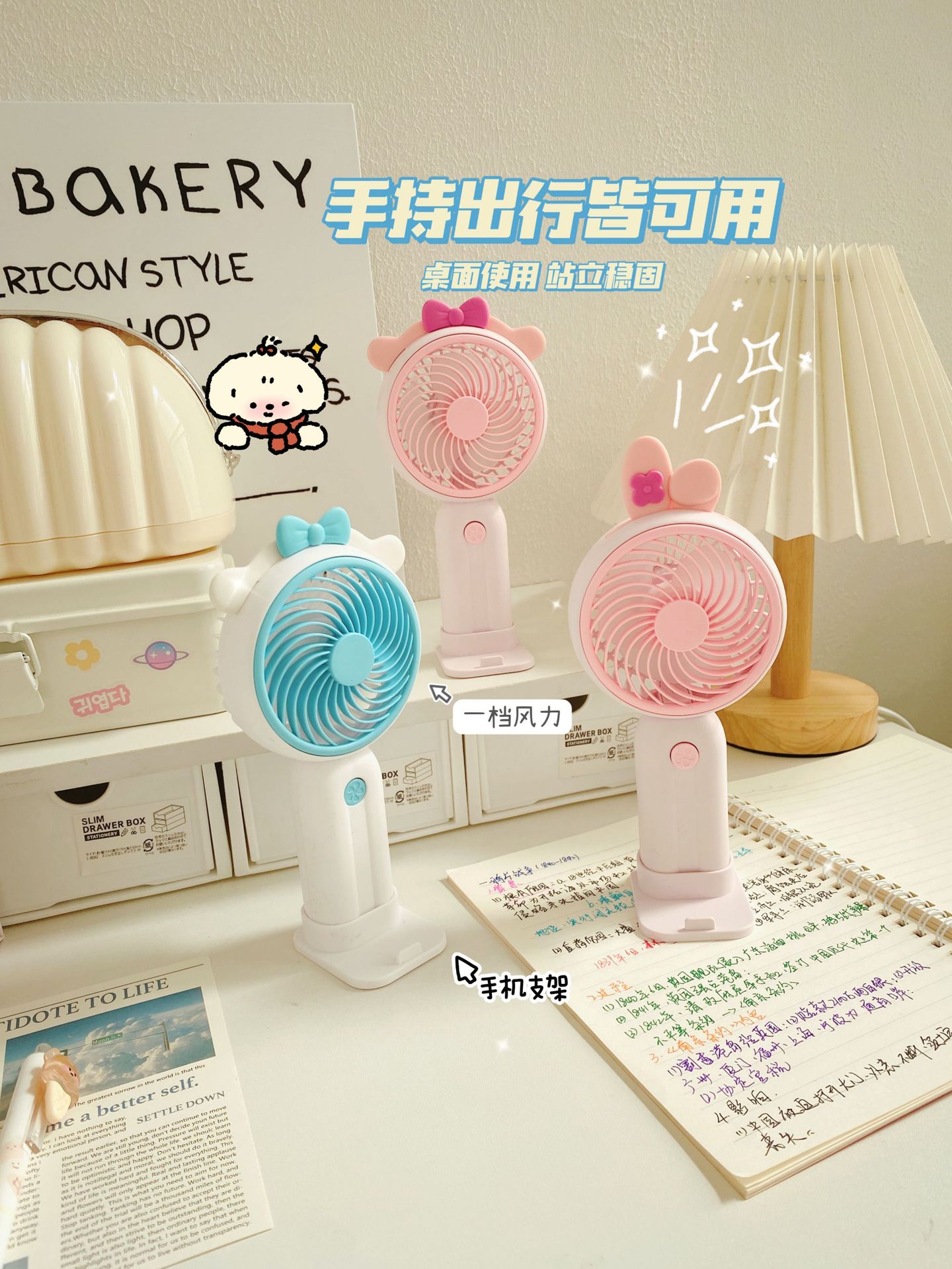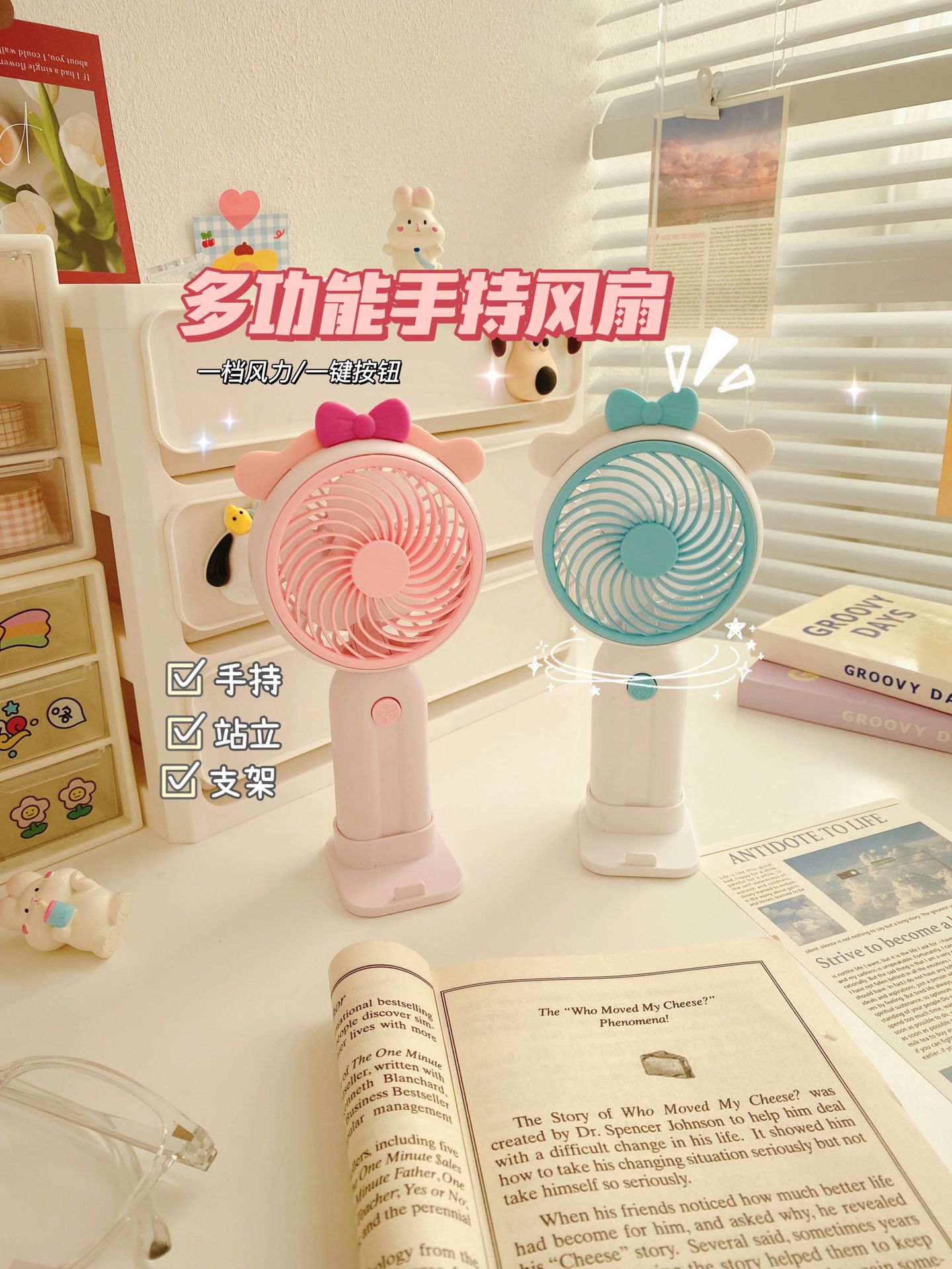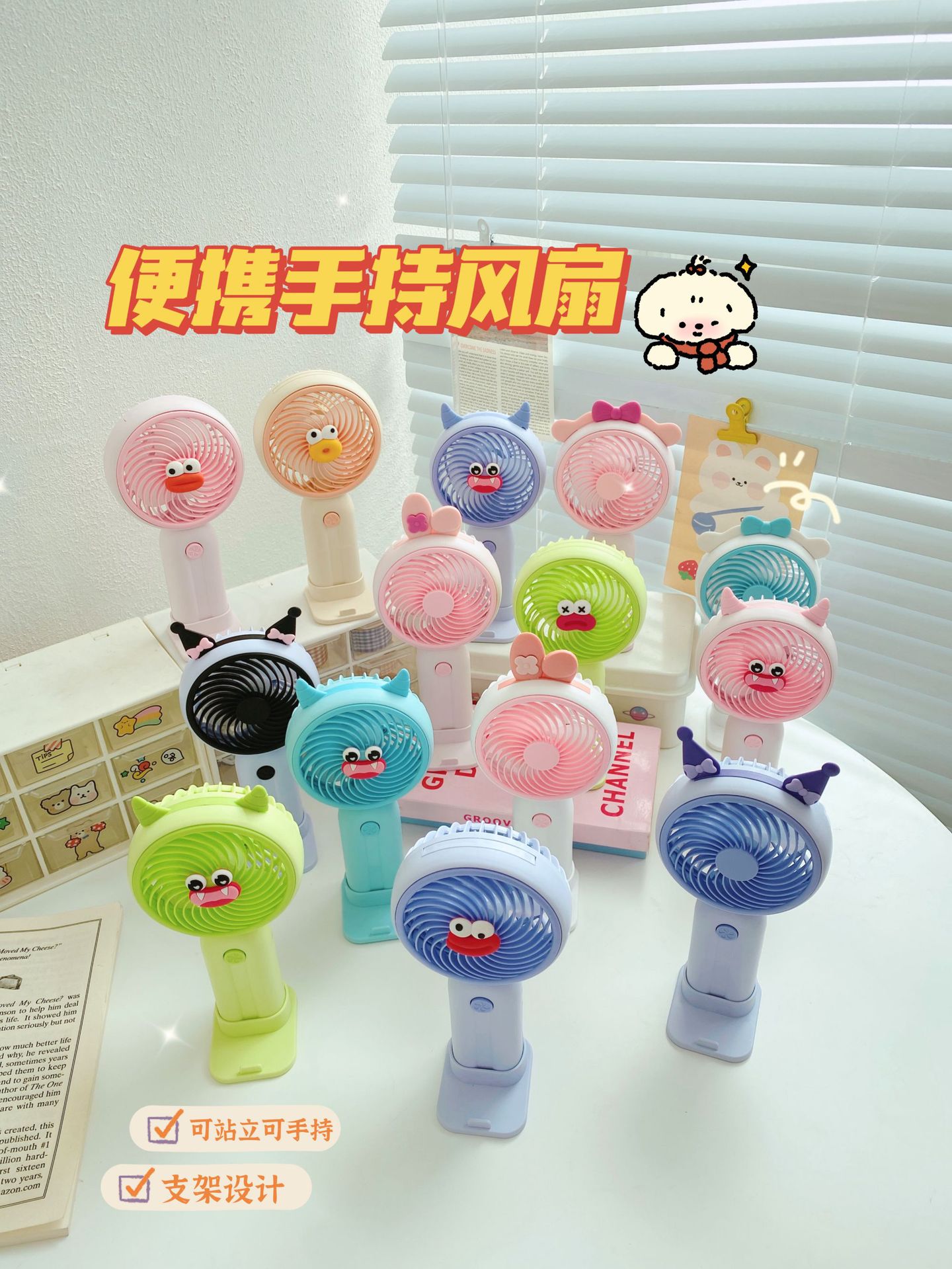 Good-looking Girl Heart Cute Desktop Stand Rechargeable Fan Cartoon Ears Student Travel Portable Fan