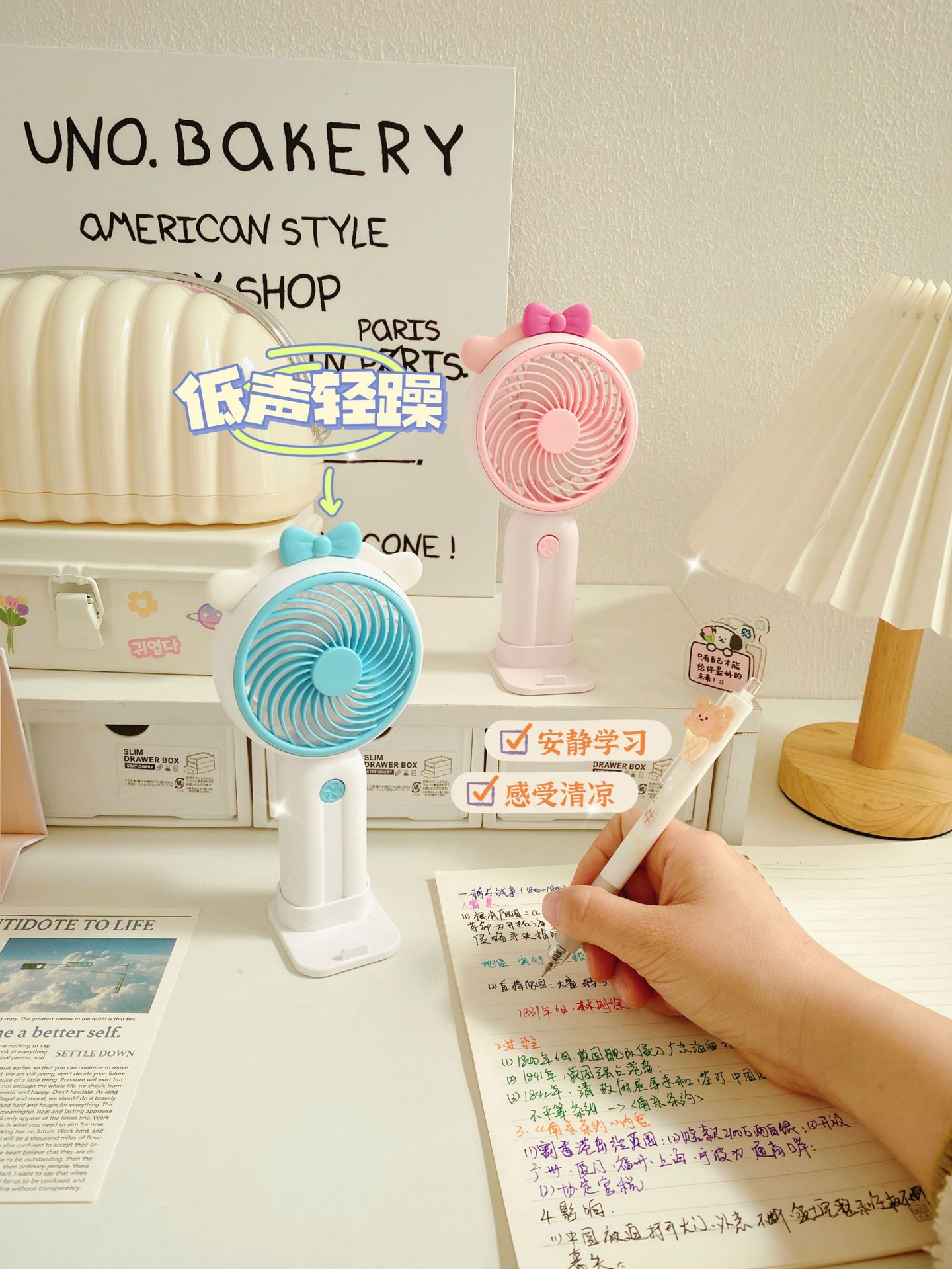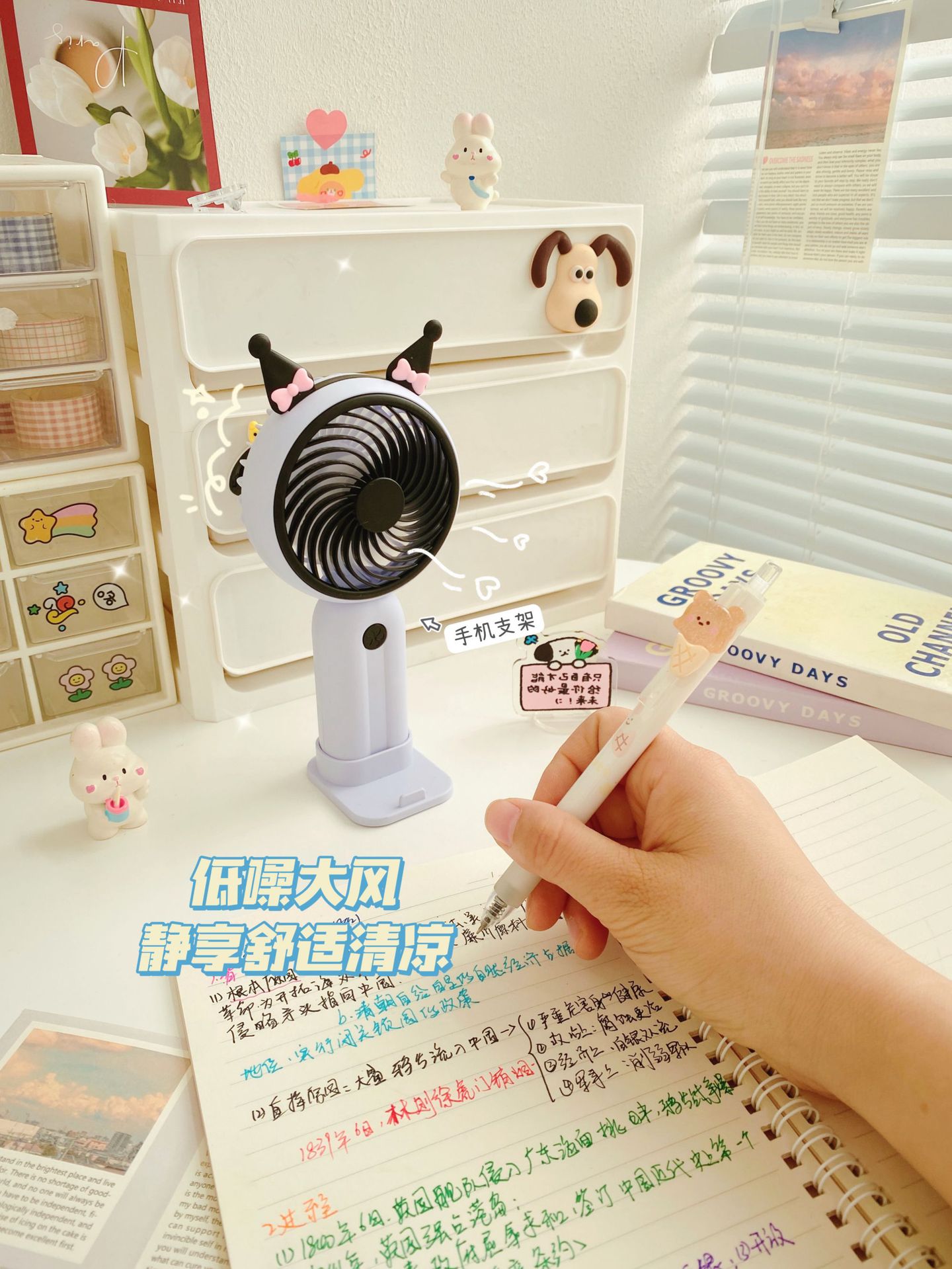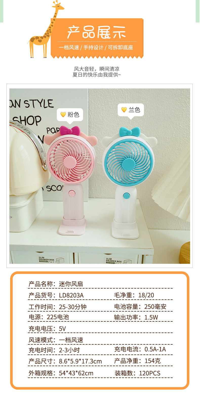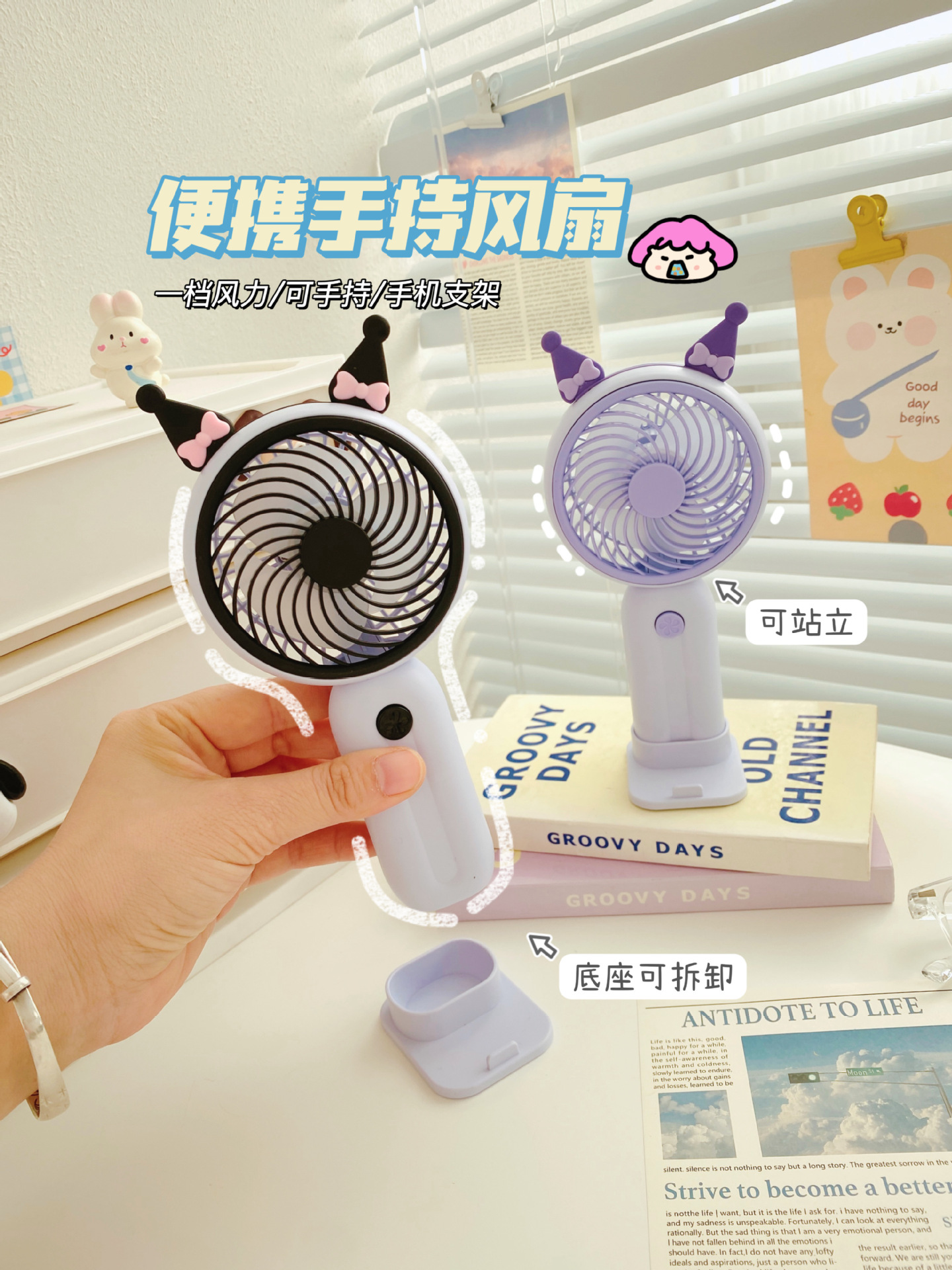 Good-looking Girl Heart Cute Desktop Stand Rechargeable Fan Cartoon Ears Student Travel Portable Fan