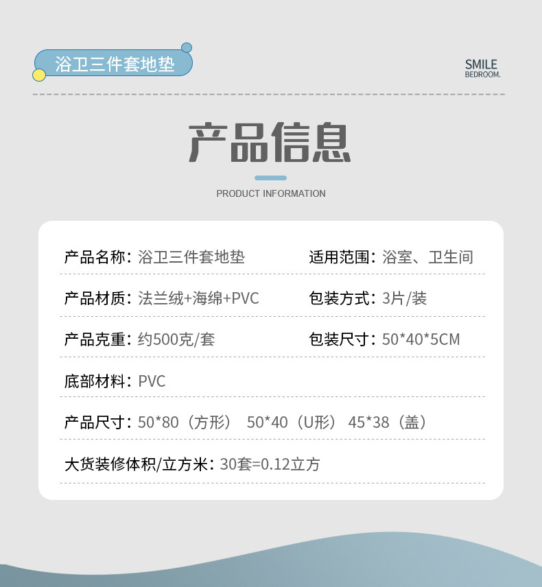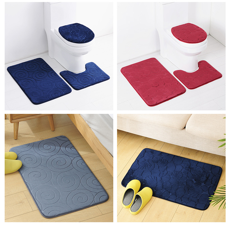 embossing sponge mat flannel bathroom mats three-piece set stone embossed toilet carpet bathroom non-slip mat lot
