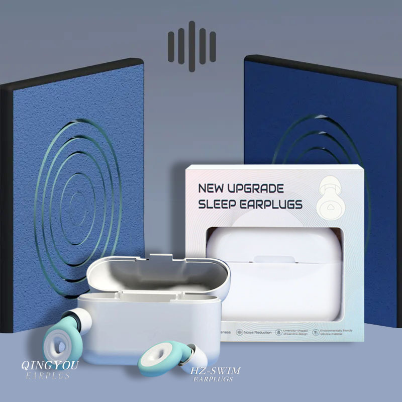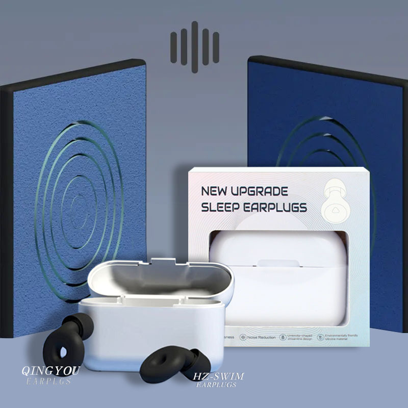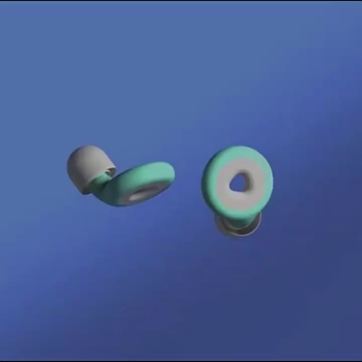 flip plastic box + black ear cap large, medium and small + green ring