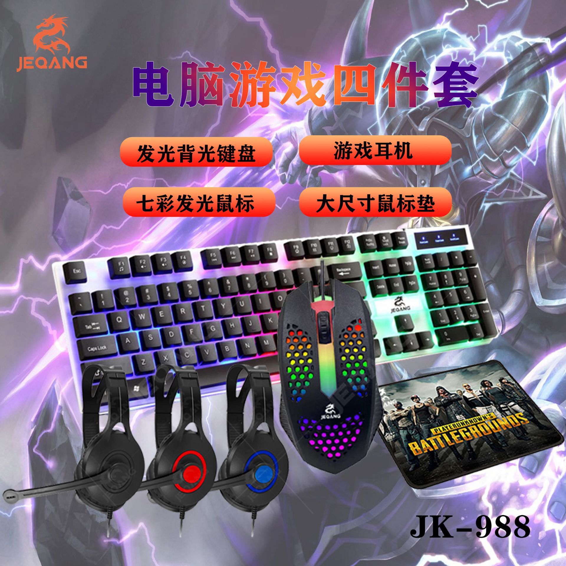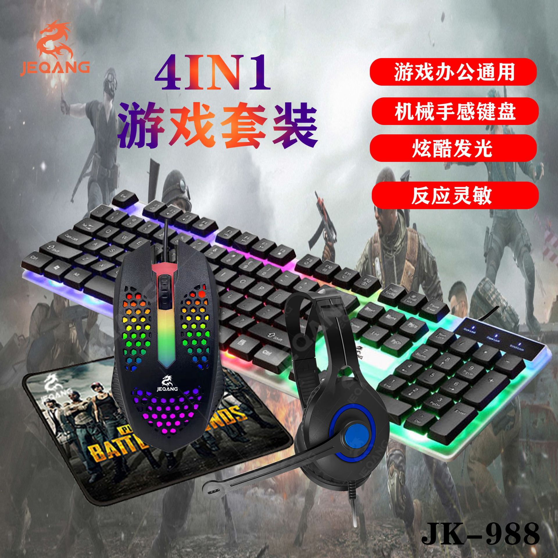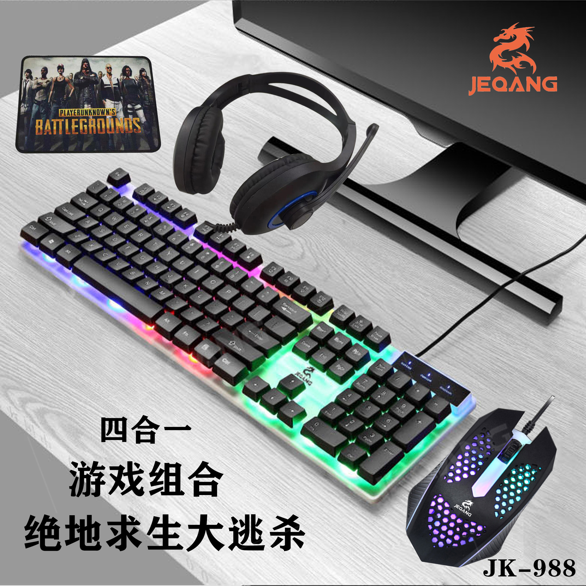 4-in-1 set keyboard mouse headset mouse pad wired office luminous game set
