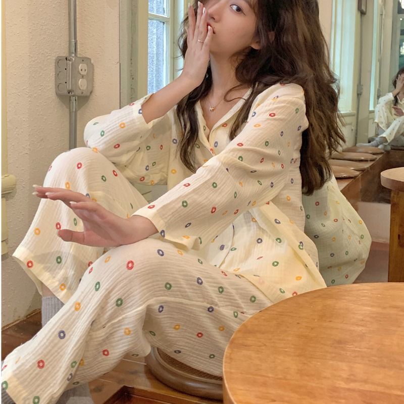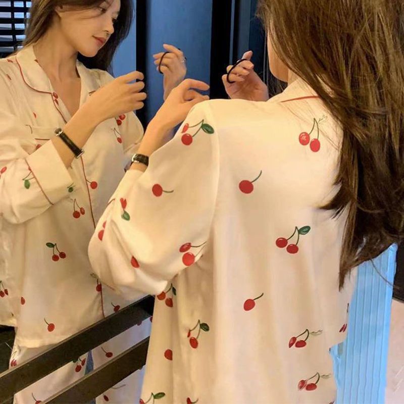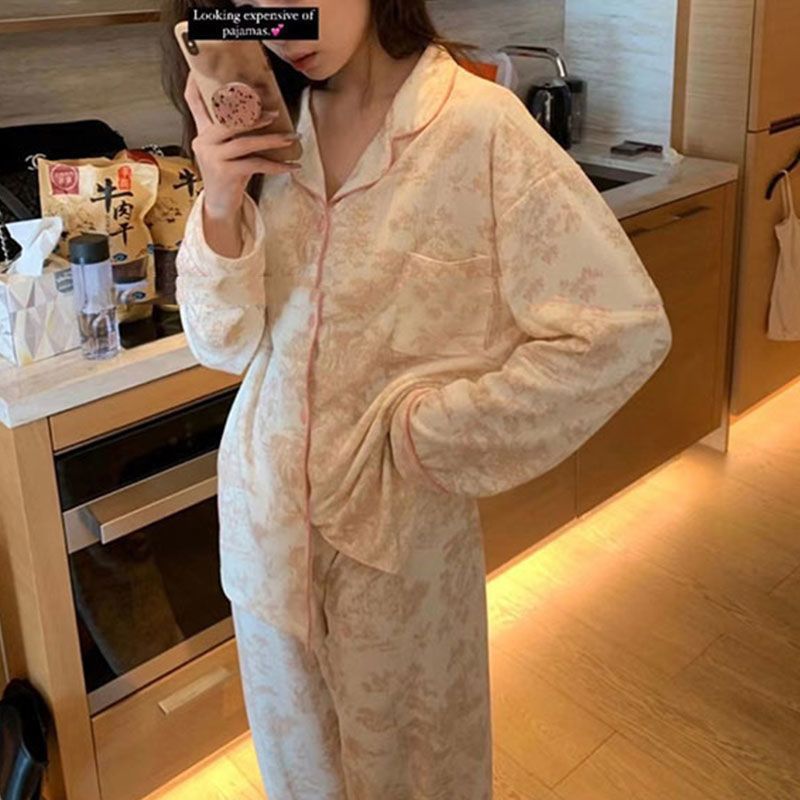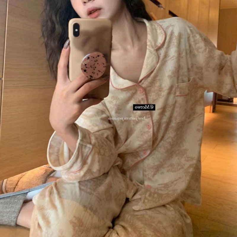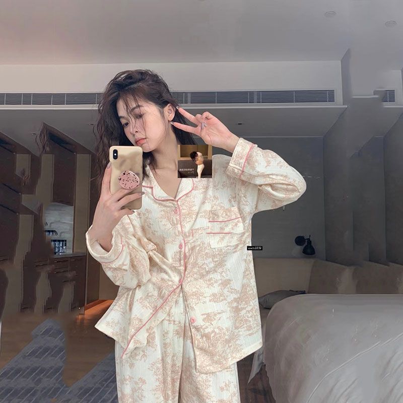 Ins Style Simple Korean Style Long-Sleeved Pajamas Women's Autumn 2022 New Girl's High-End Homewear Trousers Suit